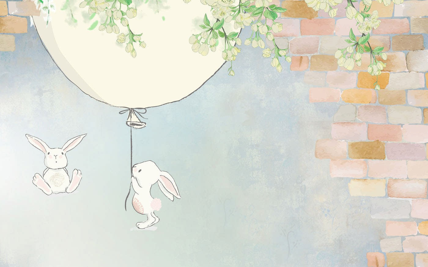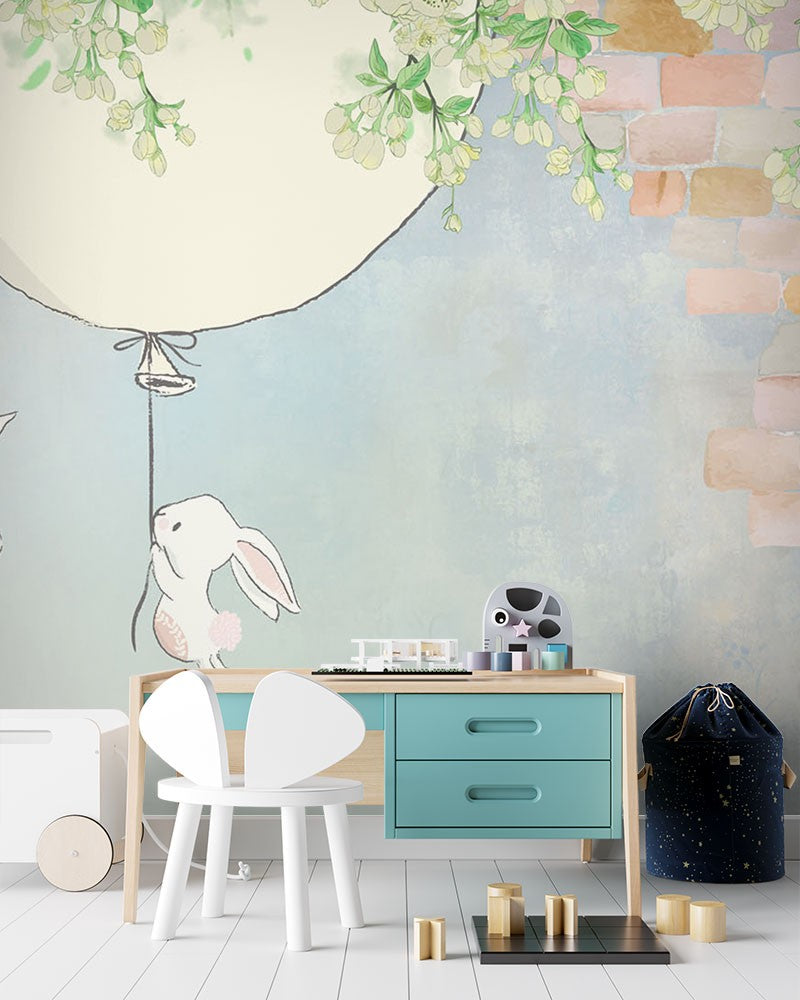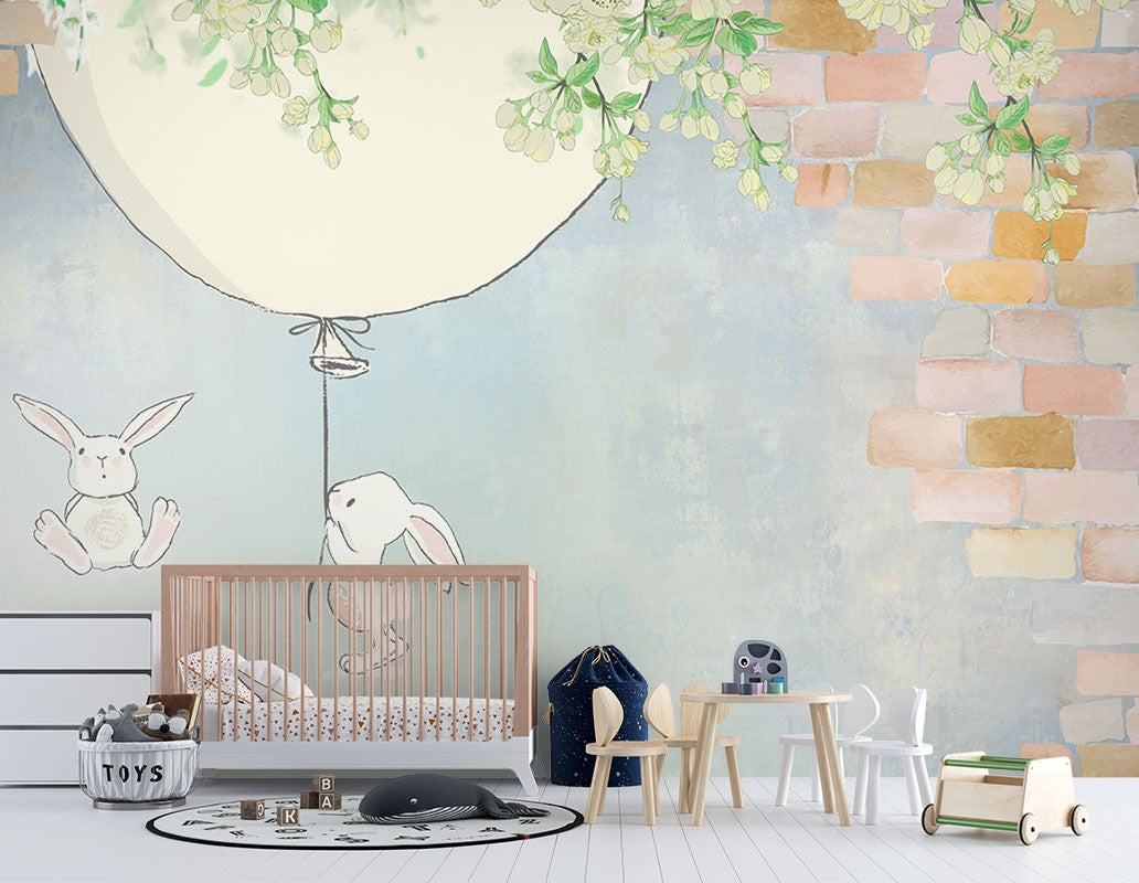 Rabbit Kids Cartoon White Wallpaper Mural,Self-Adhesive Peel And Stick 3D Wall Decor,Australian Company Removable Wall Decor