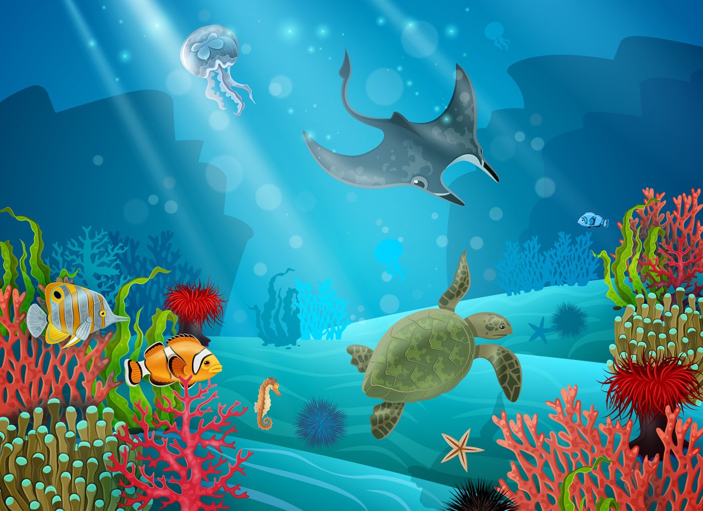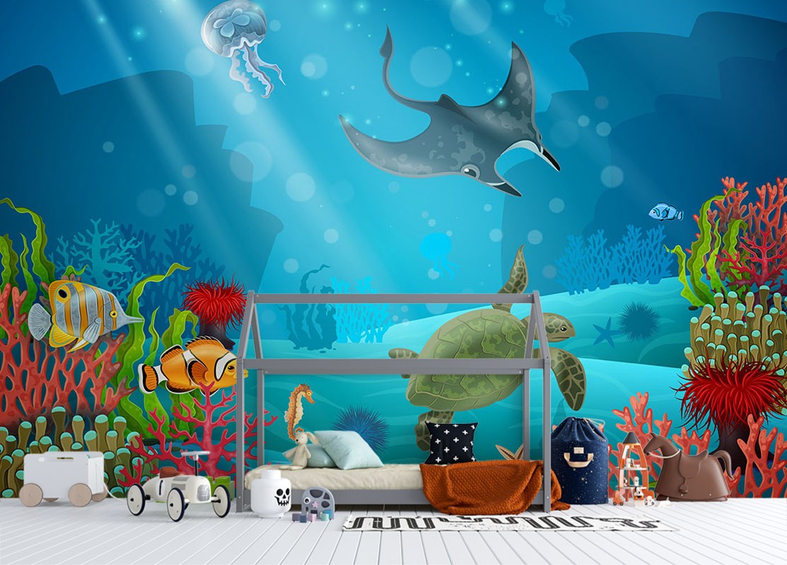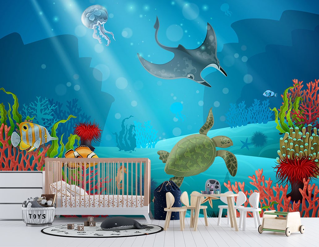 Ray Turtle Kids Animal Blue Wallpaper Mural,Self-Adhesive Peel And Stick 3D Wall Art,Australian Company Removable Wall Decor