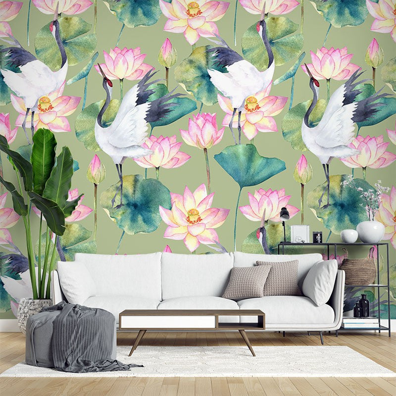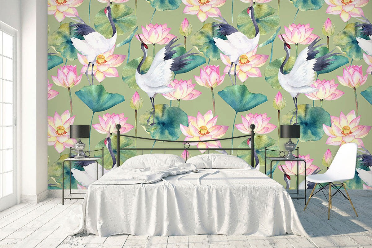 Red-Crowned Crane Floral Dutch Flowers Multicolour Wallpaper Mural,Self-Adhesive Peel And Stick 3D Wall Paper,Bedroom Designer Wall Decor