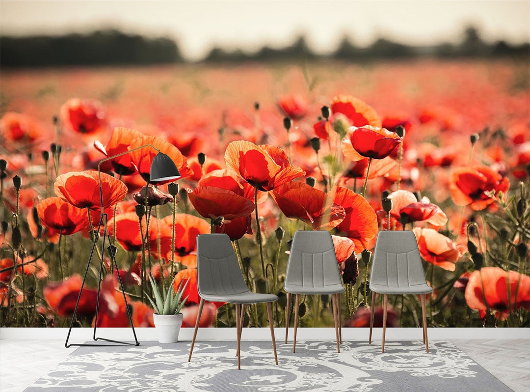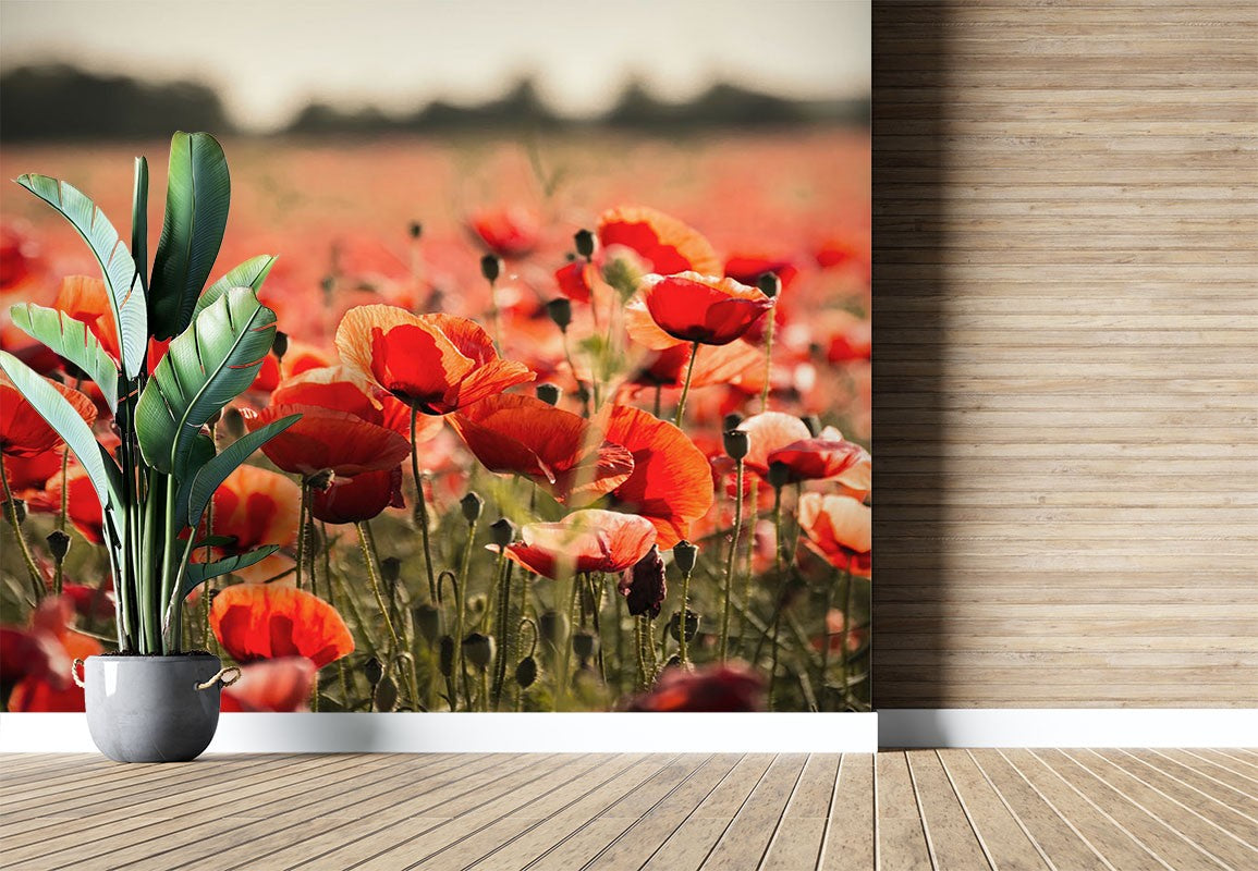 Red Dutch Flowers Floral Red Wallpaper Mural,Self-Adhesive Peel And Stick 3D Wall Decor,Bedroom Designer Wall Decor