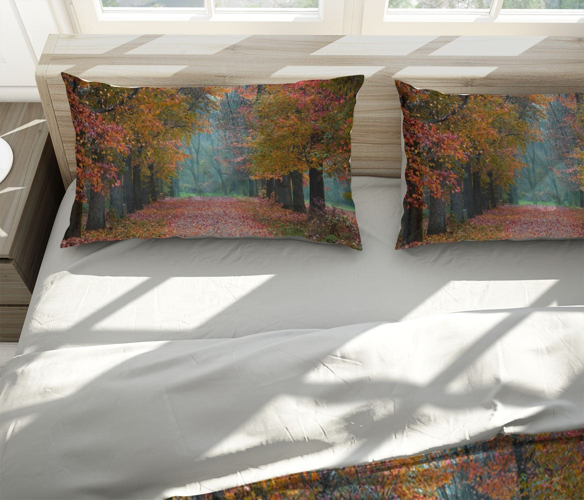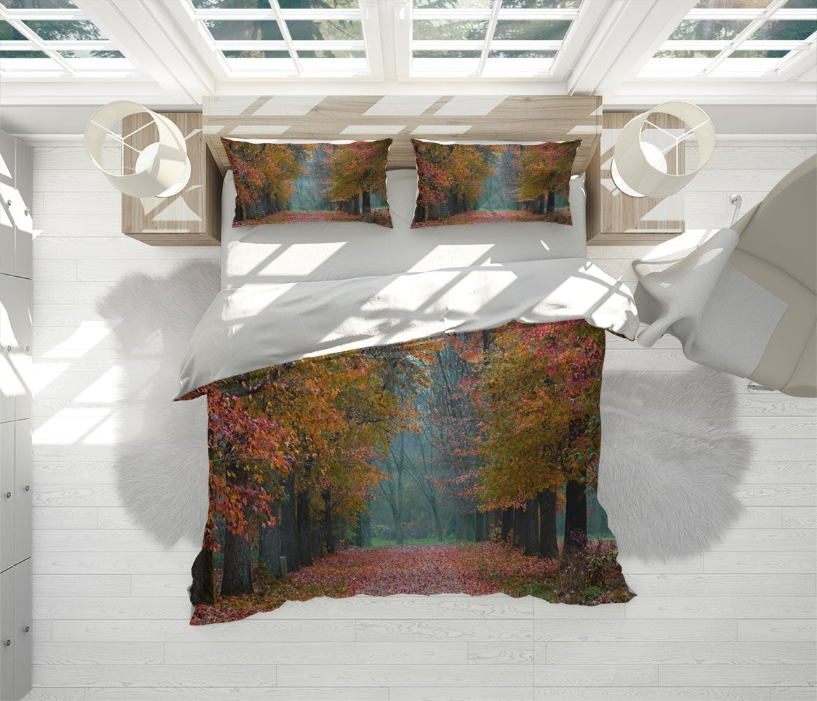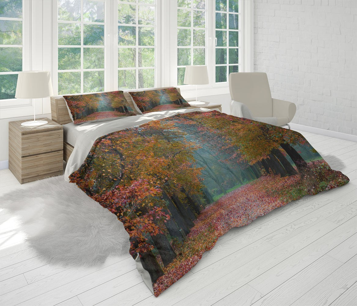Red Leaves Duvet Cover Set W Pillow Cover, Multicolour Forest Forest 3D Quilt Cover, Single Double Queen King Size Doona Cover