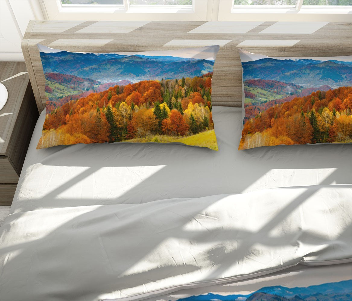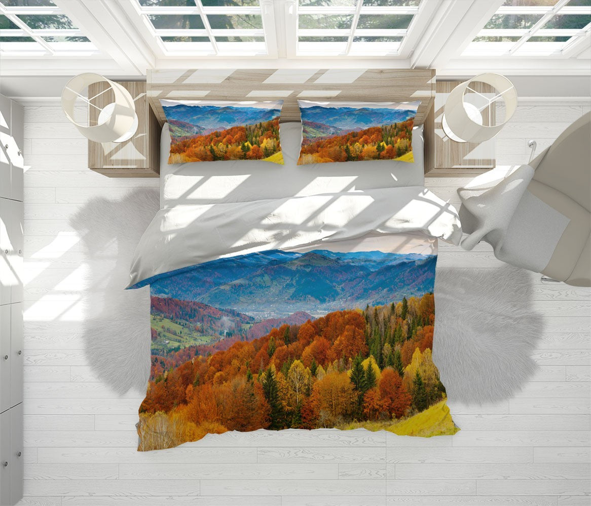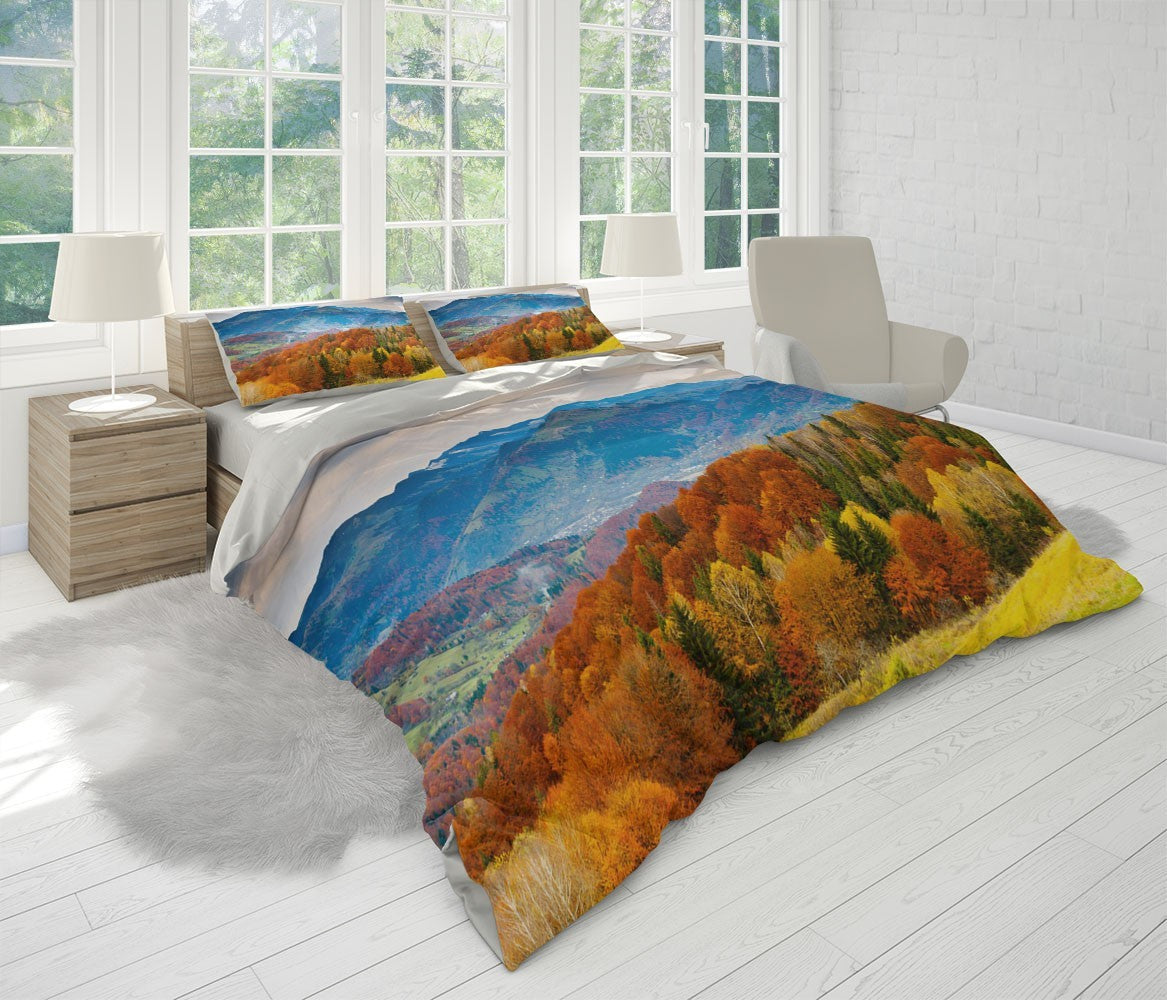 Red Tree Duvet Cover Set W Pillow Cover, Multicolour Nature Landscape 3D Quilt Cover, Single Double Queen King Size Doona Cover
