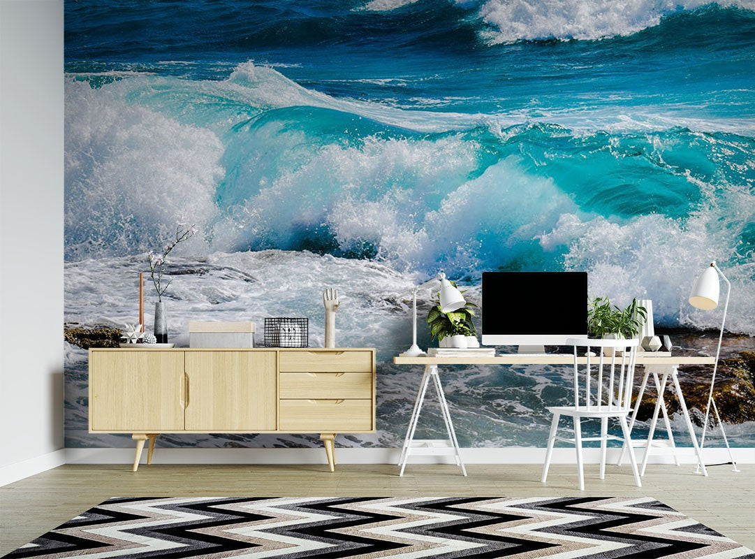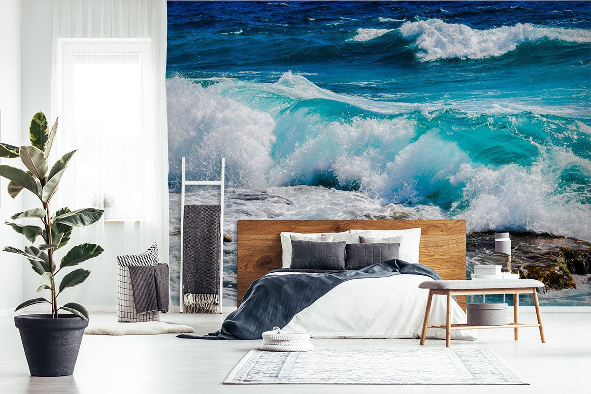 Reef Beach Wave Blue Wallpaper Mural,Self-Adhesive Peel And Stick 3D Wall Decal,Removable Bedroom Wall Decor