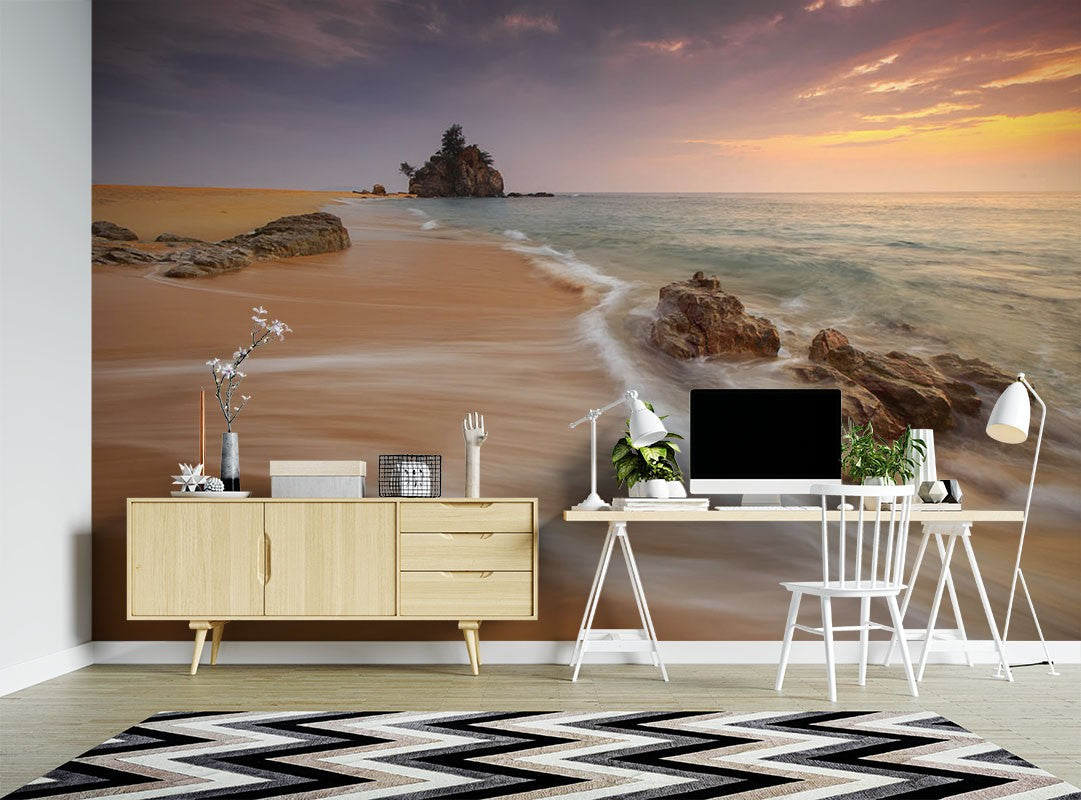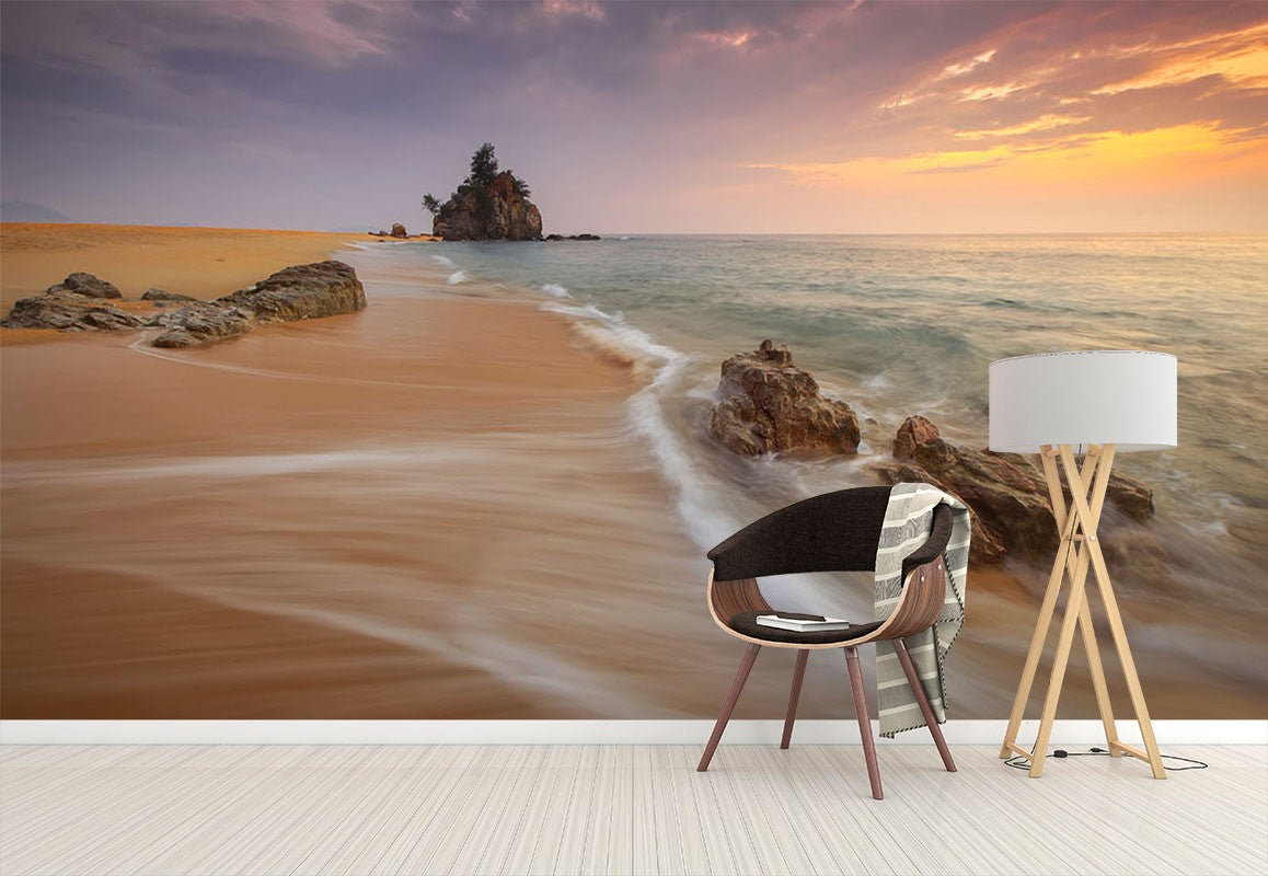 Reef Sunset Beach Wave Gold Wallpaper Mural,Self-Adhesive Peel And Stick 3D Wall Art,Removable Bedroom Wall Decor