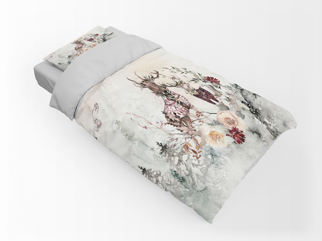 Reindeers Flowers Kids Fantasy Bright 3D Duvet Cover Set W Pillow Cover, Single Double Queen King Size, Printed Cotton Quilt Doona Cover