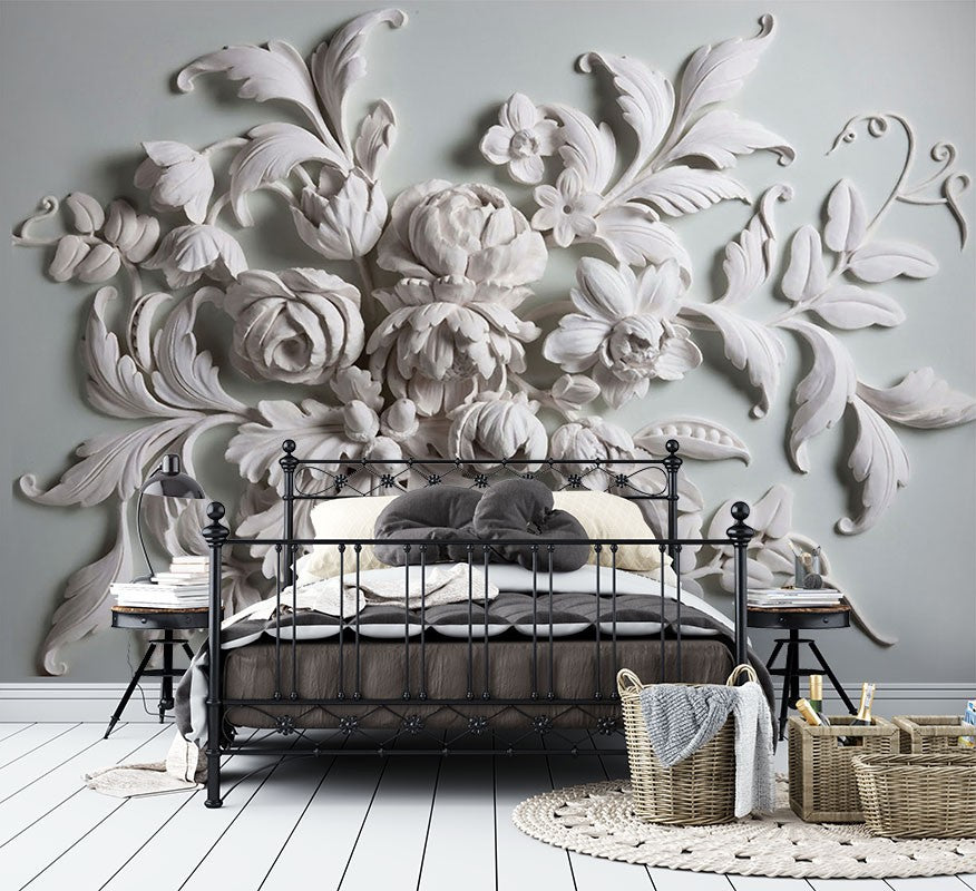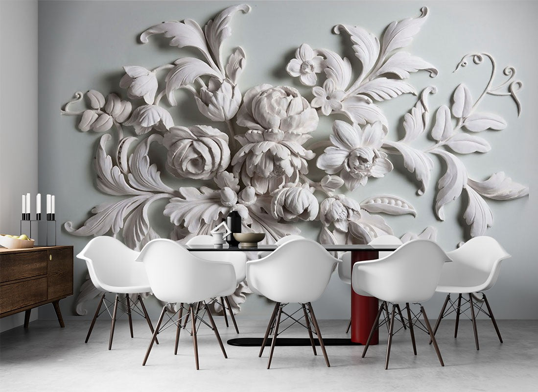 Relief Dutch Flower Art 3D Creamy Wallpaper Mural,Self-Adhesive Peel And Stick 3D Wall Paper,Removable Designer Wall Decor