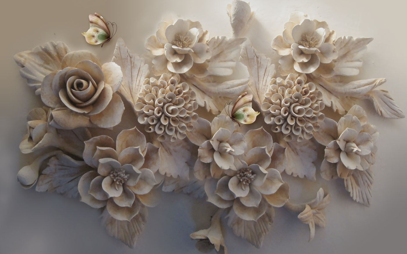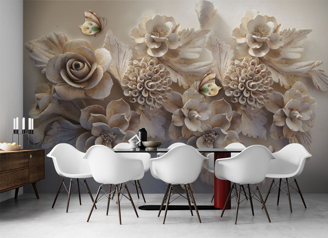 Relief Dutch Flower Art Religious Neutral Wallpaper Mural,Self-Adhesive Peel And Stick 3D Wall Decal,Bedroom Designer Wall Decor