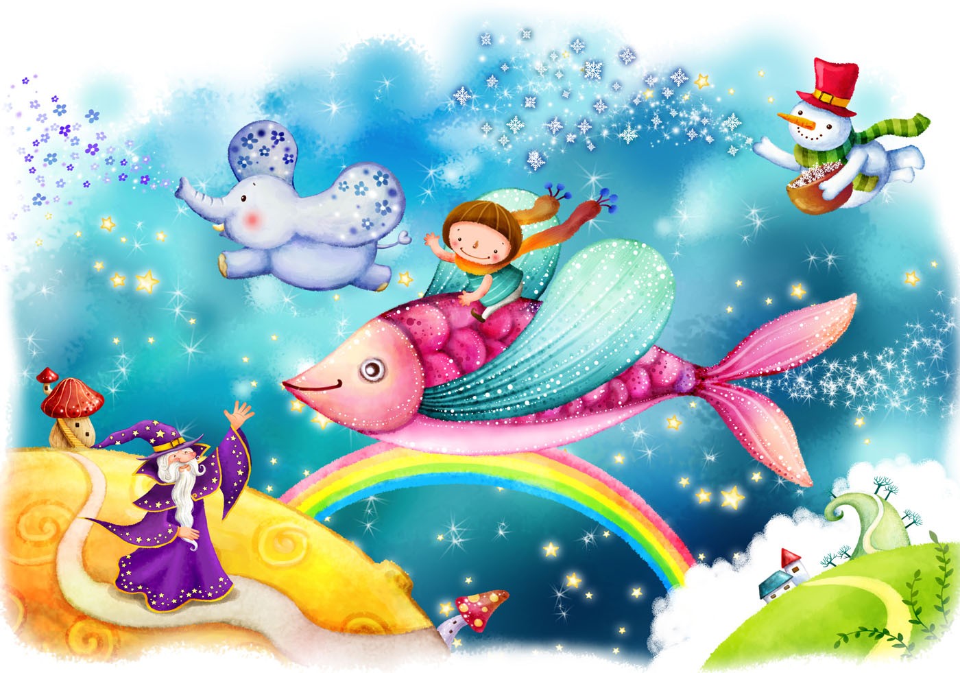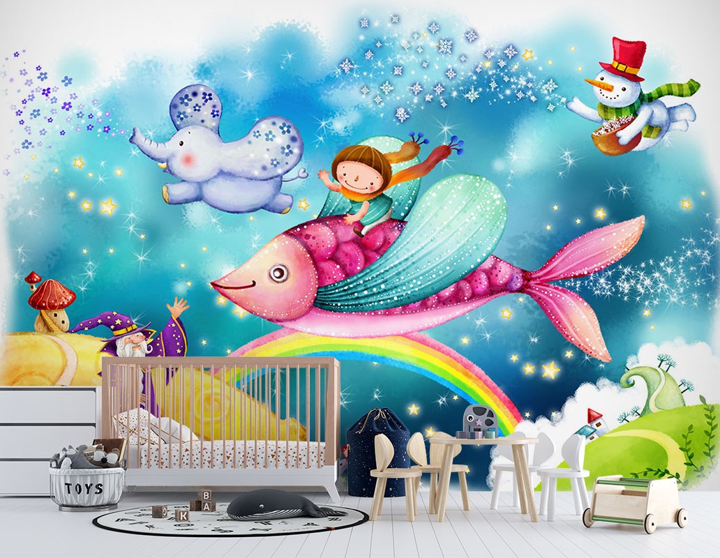 Riding Fish Kids Art For Kids Bright Wallpaper Mural,Self-Adhesive Peel And Stick 3D Wall Decal,Australian Company Designer Wall Decor
