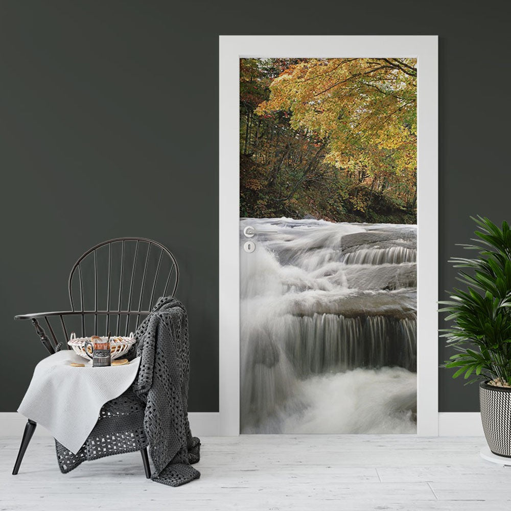River Creek Forest Jungle Door Wrap, Customized Mural For Door, Door Mural Sticker, Peel And Stick Door Cover, Removable Door Decal