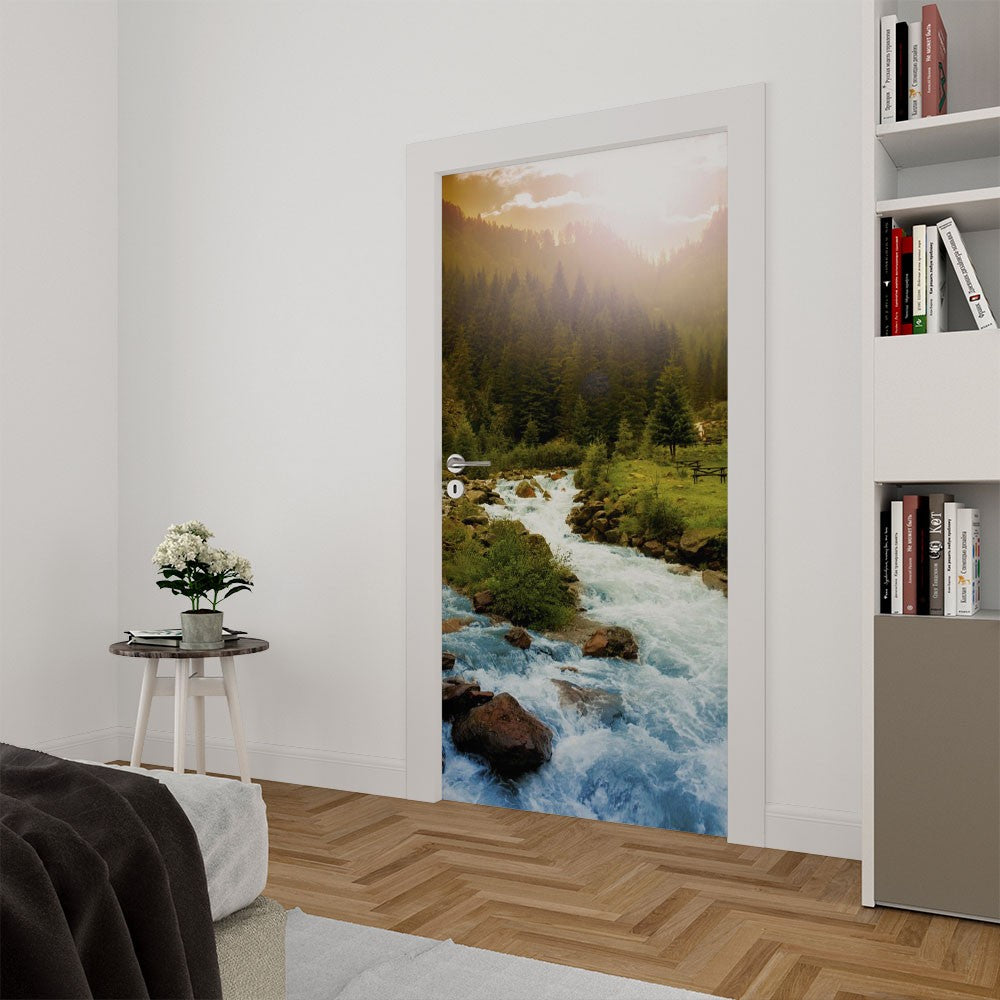 River Forest Nature Rivers & Lakes Door Wrap, Customized Mural For Door, Door Mural Sticker, Peel And Stick Door Cover, Removable Door Decal