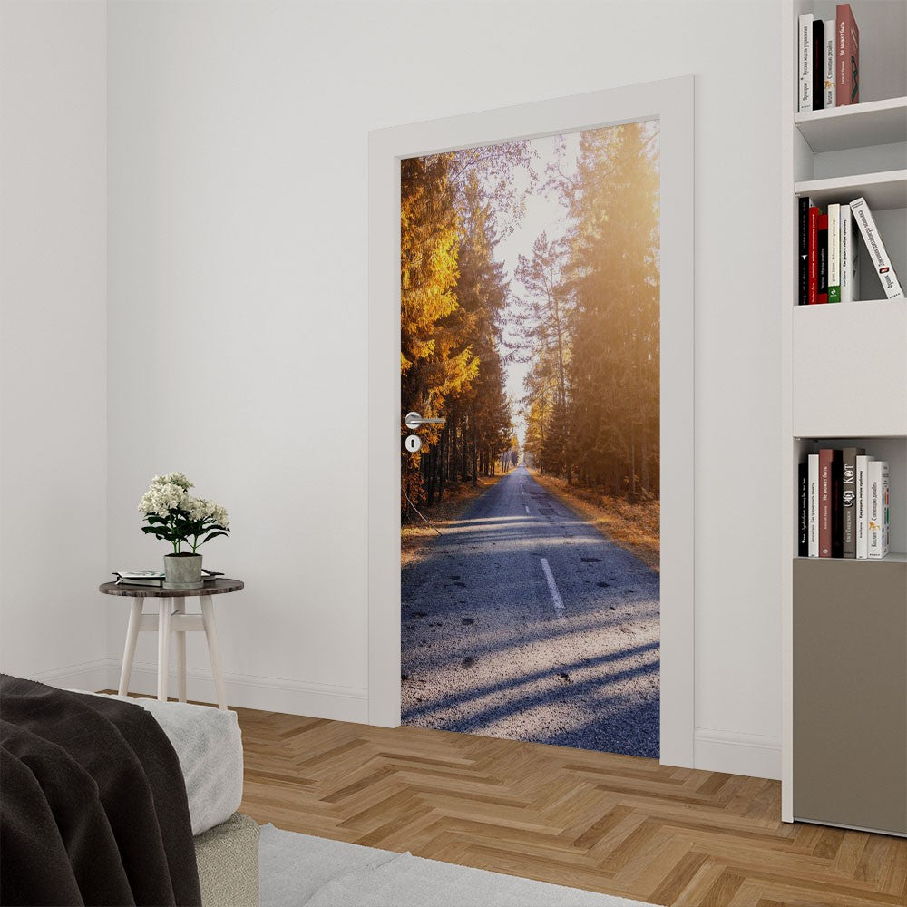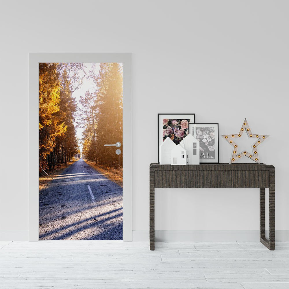 Road Forest Seasons Door Wrap, Customized Mural For Door, Door Mural Sticker, Peel And Stick Door Cover, Removable Door Decal