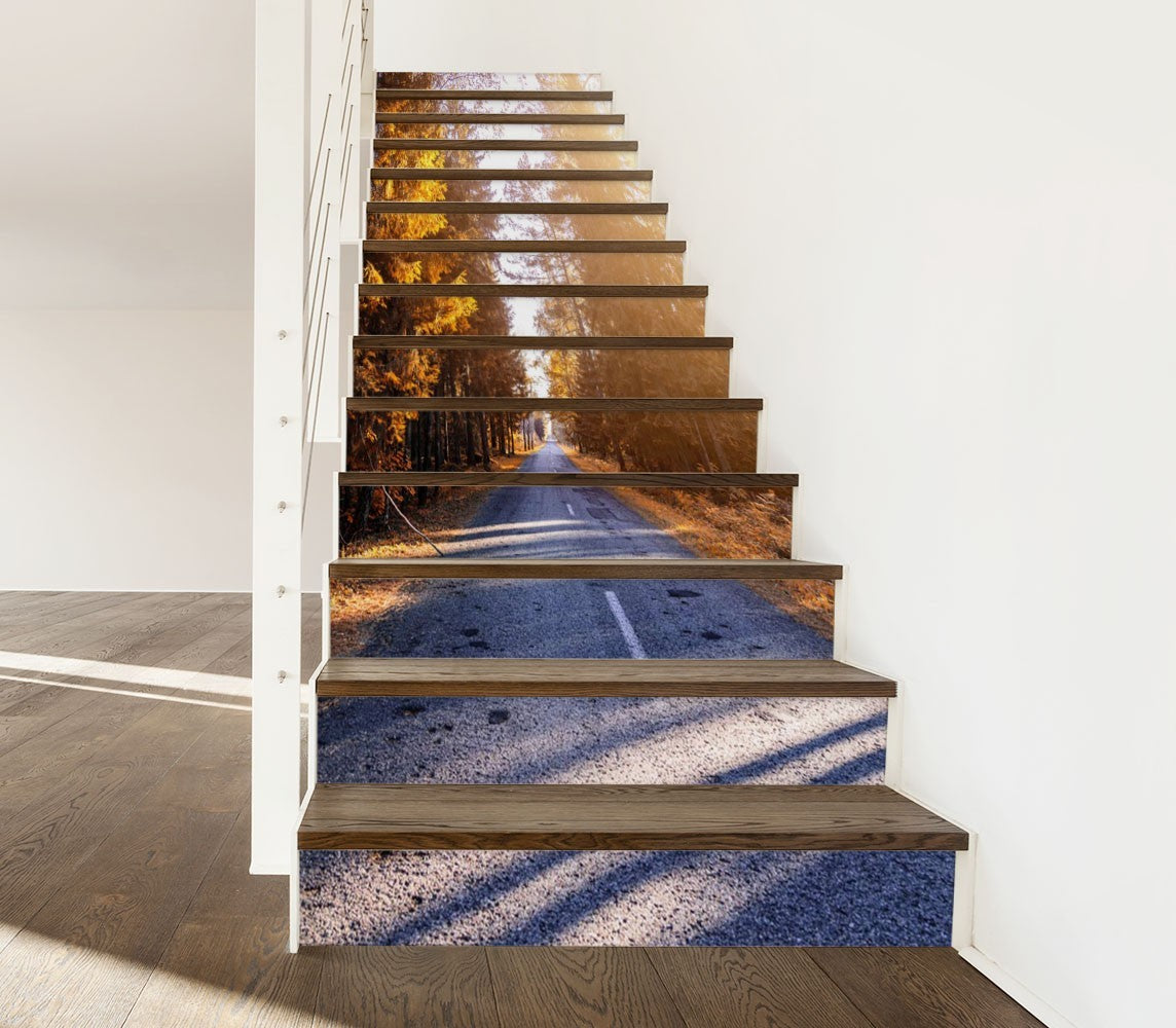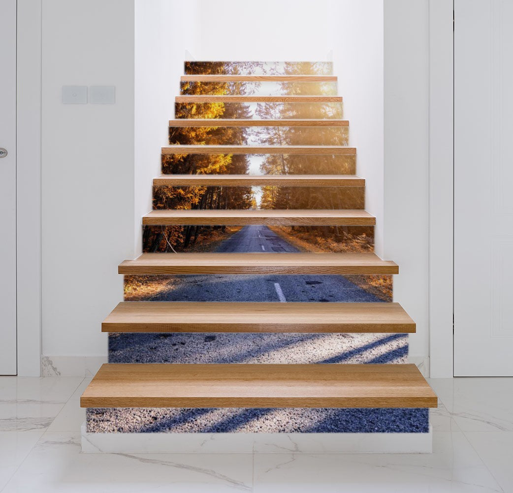 Road Forest Seasons Gold Stair Riser Decals, Waterproof Removable Staircase Decals, Vinyl Peel And Stick Stairs Decal Stickers