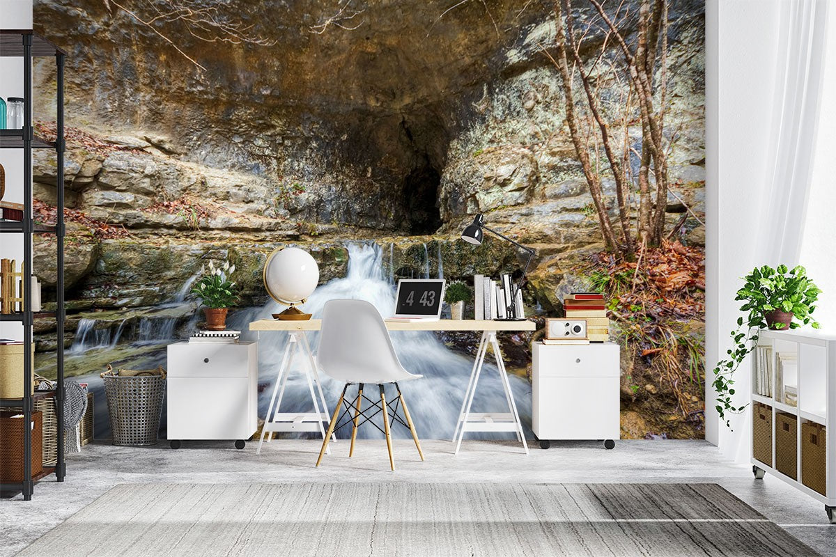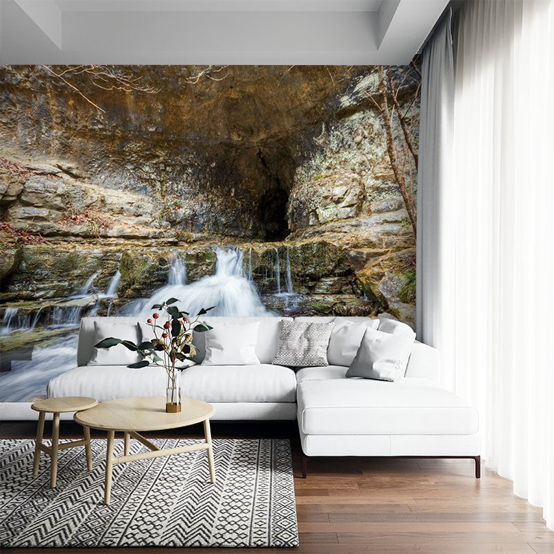 Rock Forest Nature Waterfall Brown Wallpaper Mural,Self-Adhesive Peel And Stick 3D Wall Decal,Removable Bedroom Wall Decor