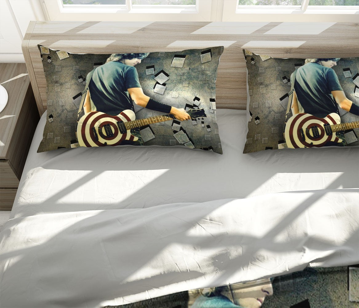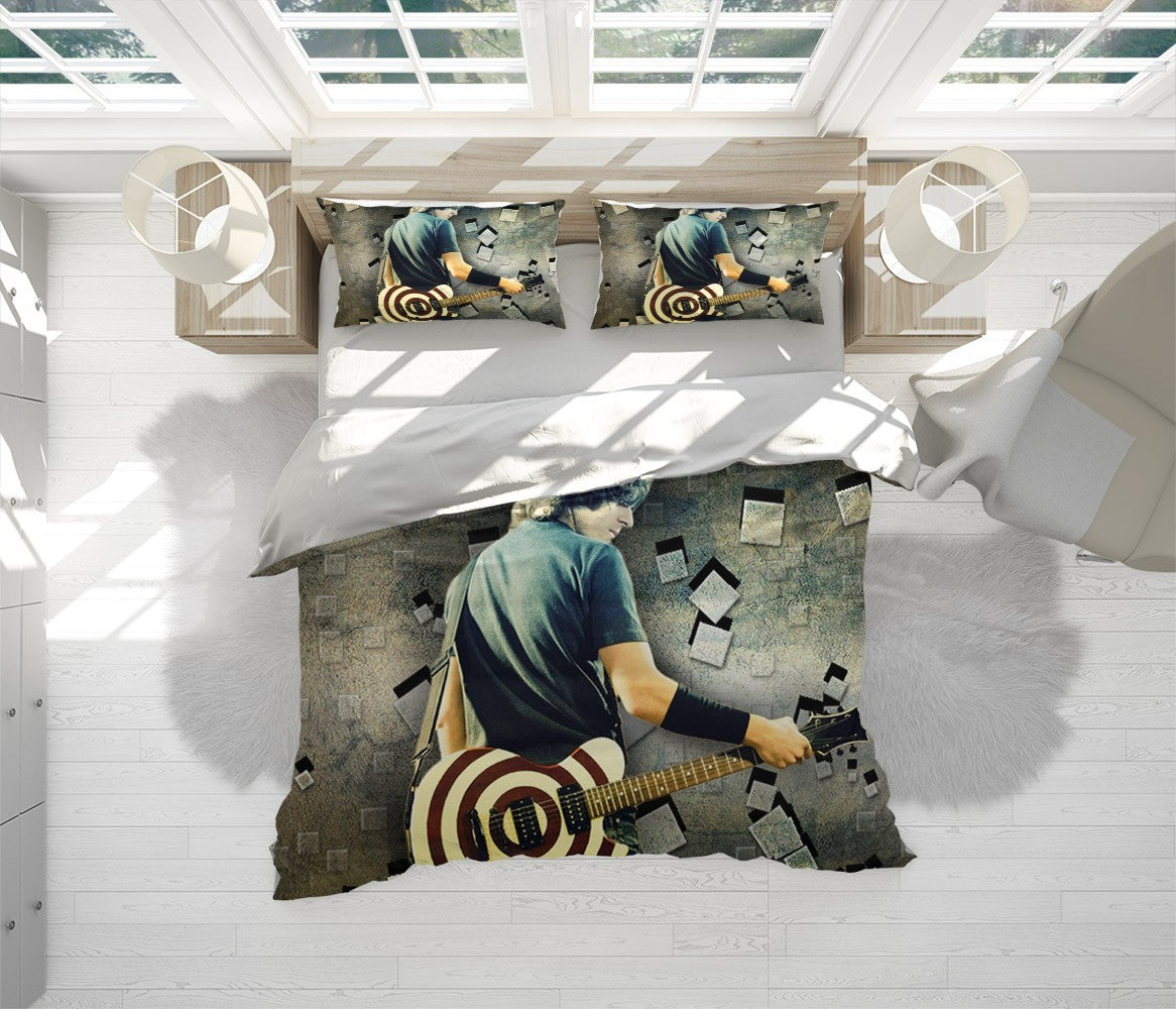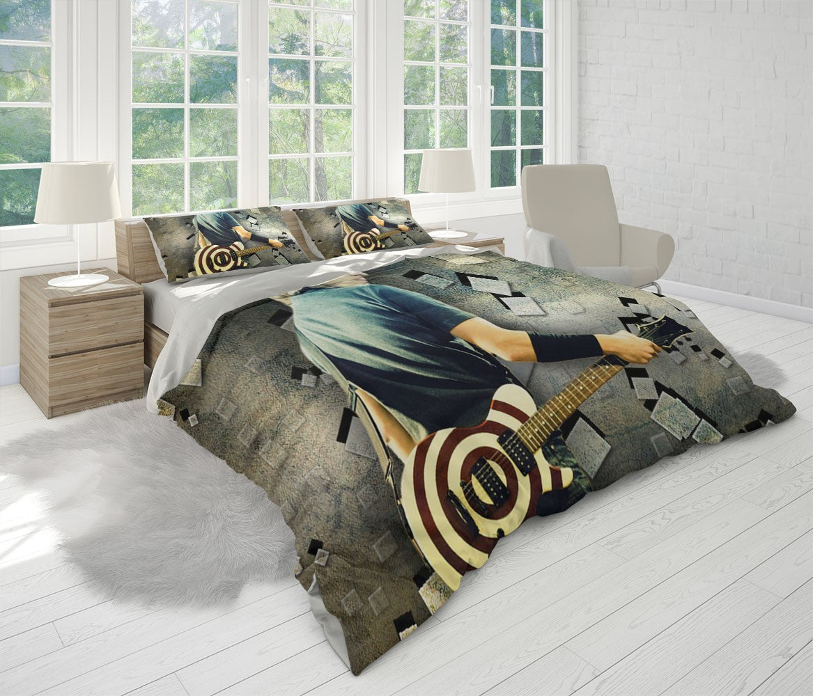 Rock Guitar Duvet Cover Set W Pillow Cover, Dark Hobby Music 3D Quilt Cover, Single Double Queen King Size Doona Cover