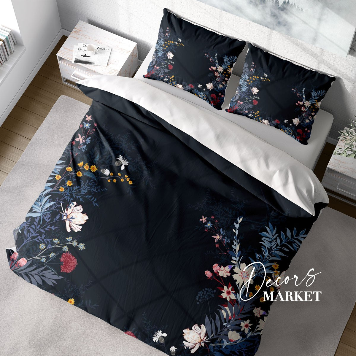 Romantic Floral Leaf Duvet Cover Set w Pillowcases, Blue Floral Flowers 3D Quilt Cover, 3pc Single Double Queen King Size Doona Cover