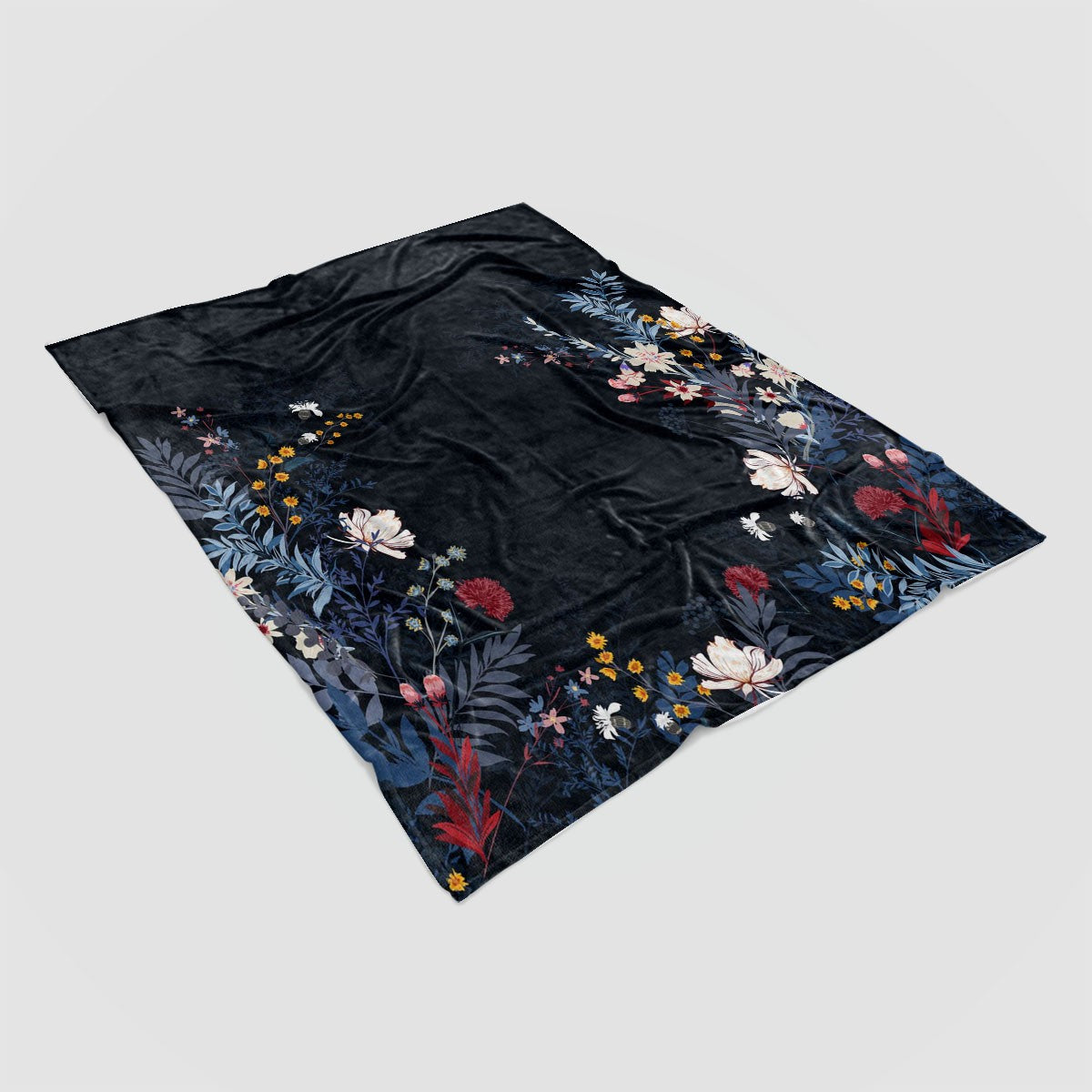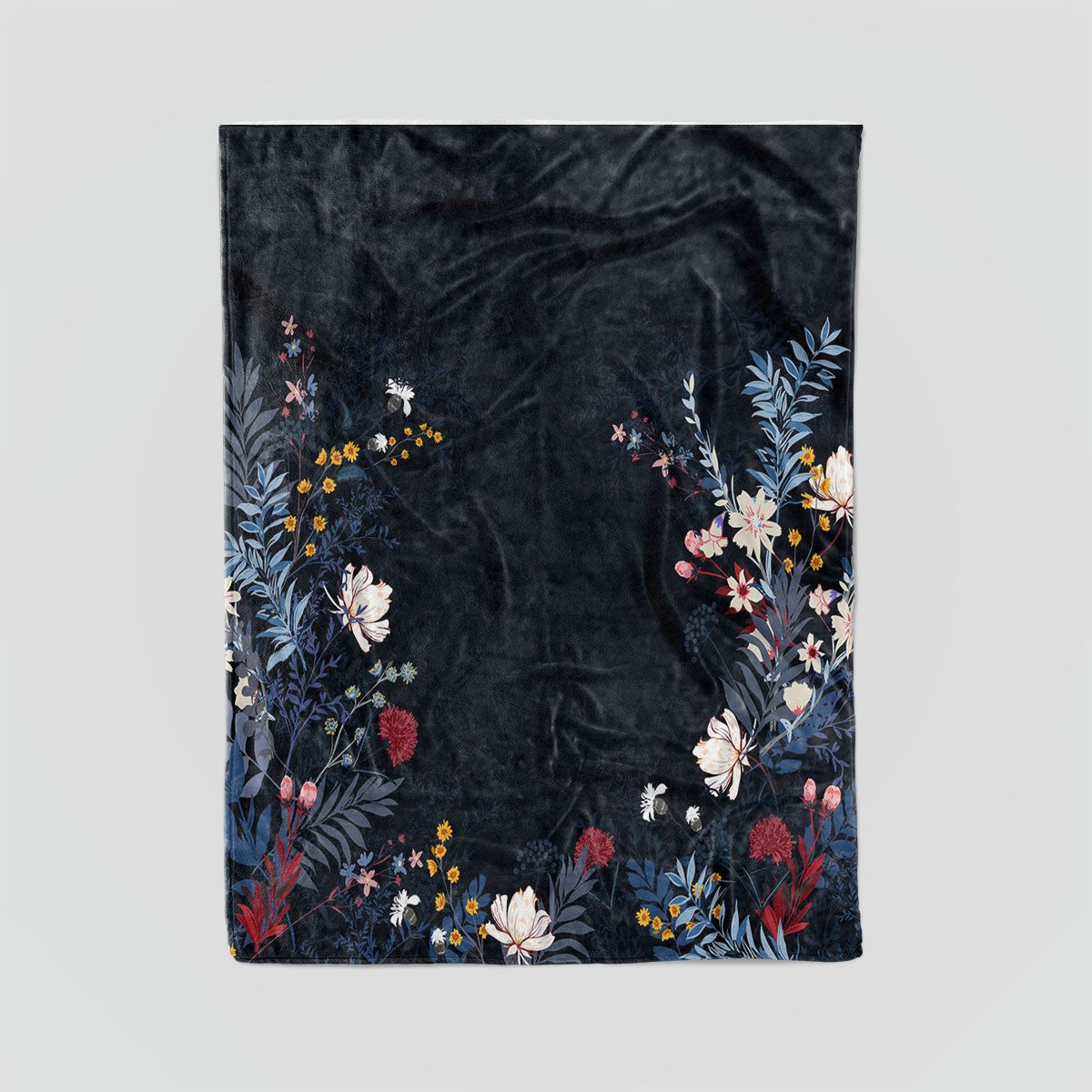 Romantic Floral Leaf Floral Flowers Blue Personalized Throw Blanket Custom Fleece Sherpa Throw