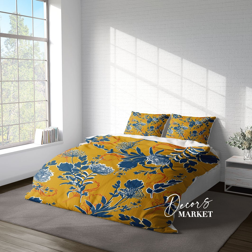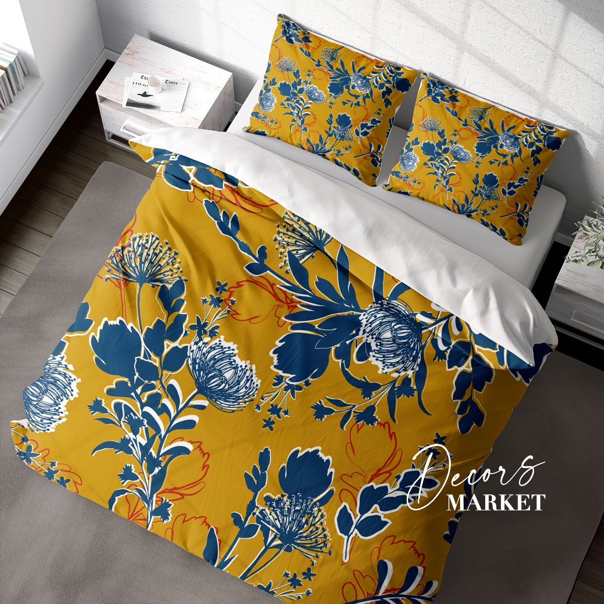 Rose Art Duvet Cover Set w Pillowcases, Yellow Floral Patterns 3D Quilt Cover, 3pc Single Double Queen King Size Doona Cover