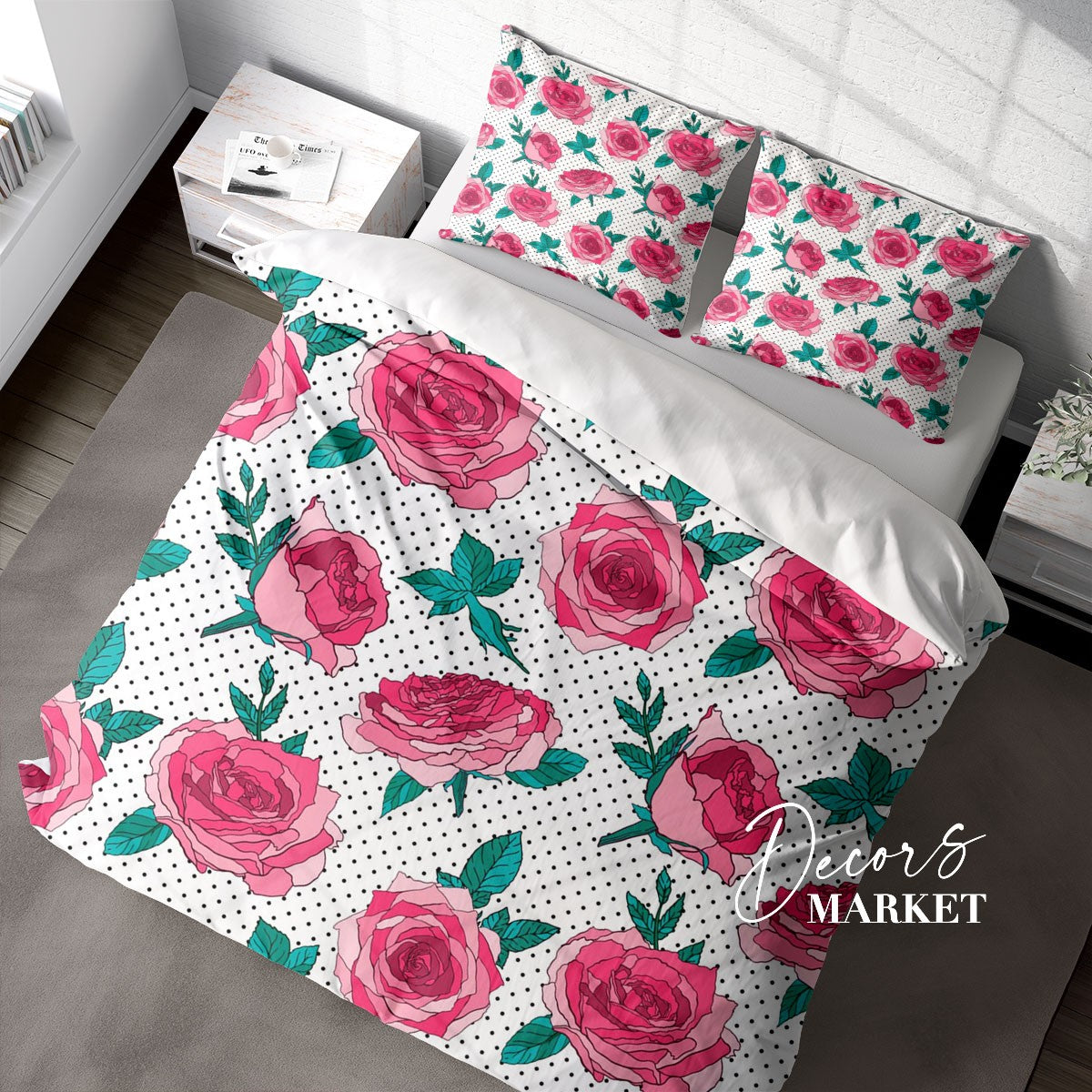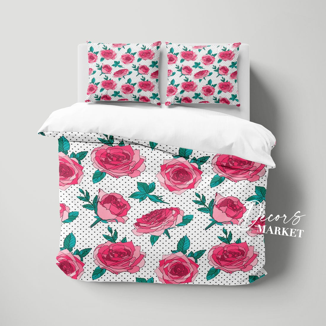 Rose Blossom Duvet Cover Set w Pillowcases, Red Floral Flowers 3D Quilt Cover, 3pc Single Double Queen King Size Doona Cover