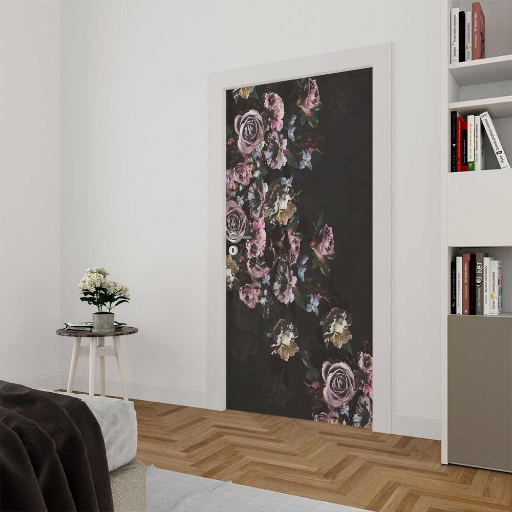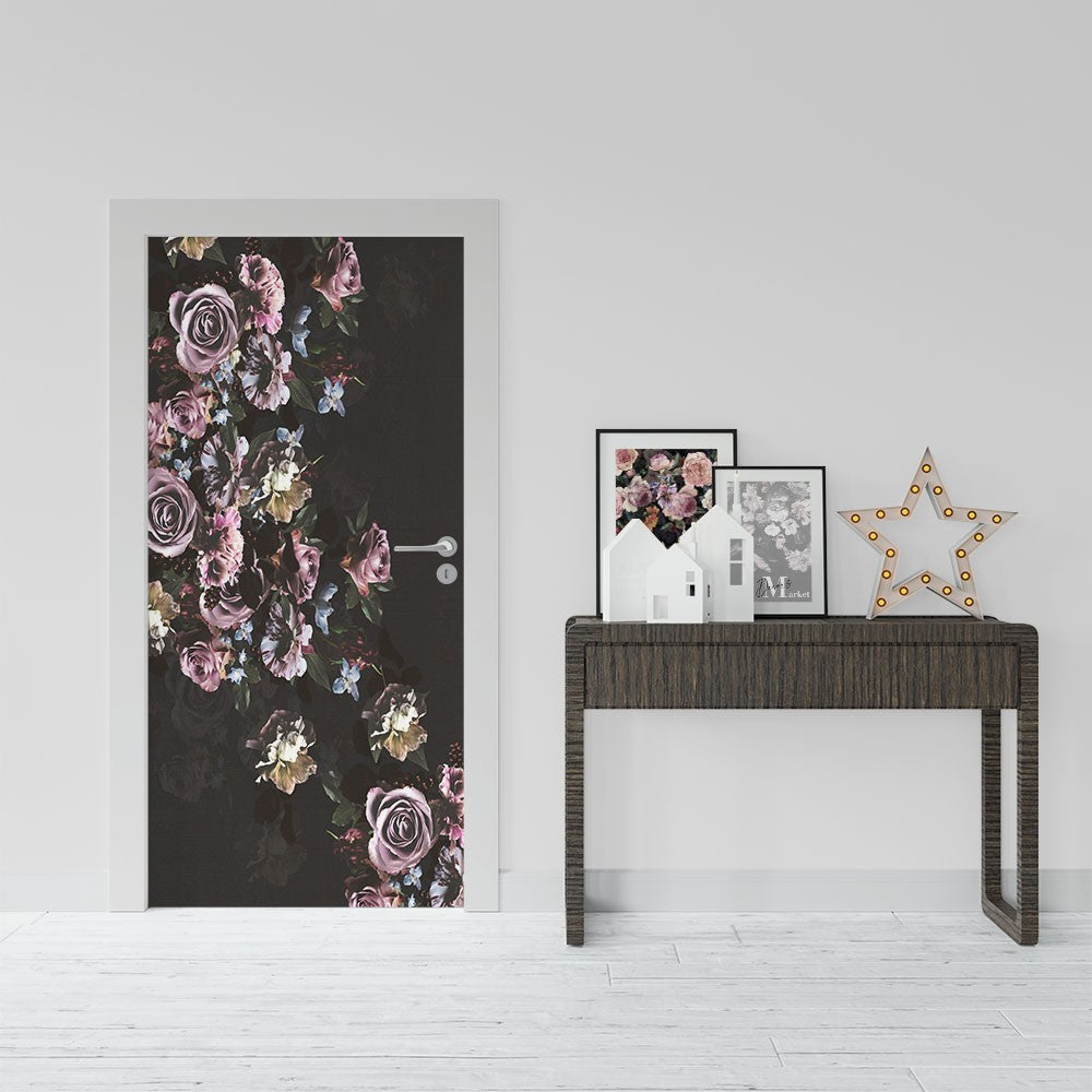 Rose Bouquet Floral Flowers Door Wrap, Customized Mural For Door, Door Mural Sticker, Peel And Stick Door Cover, Removable Door Decal