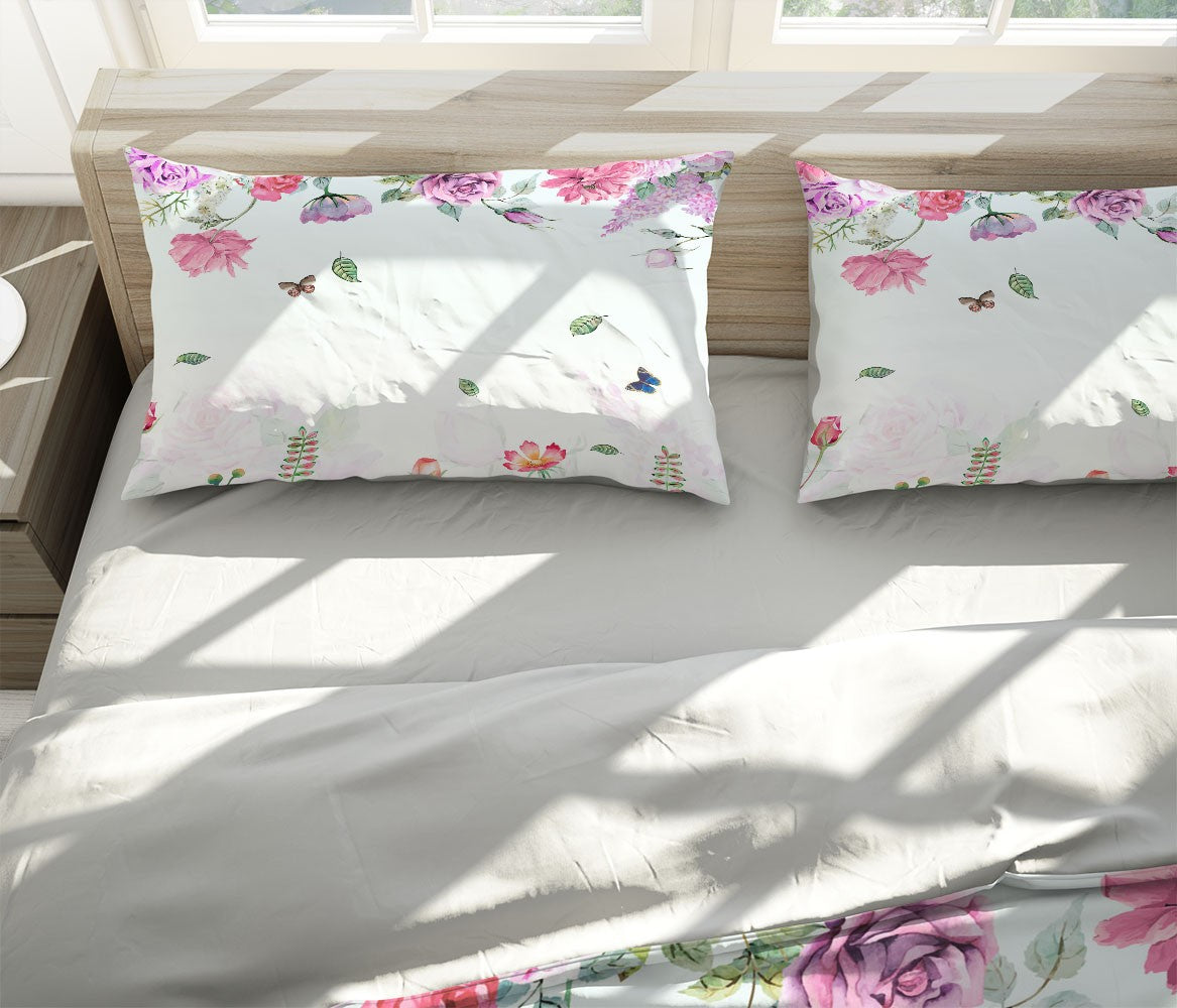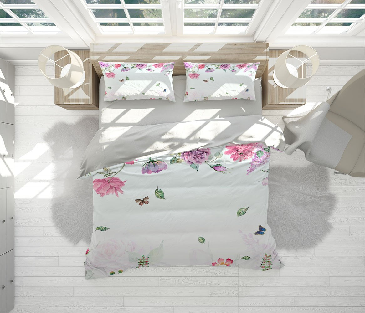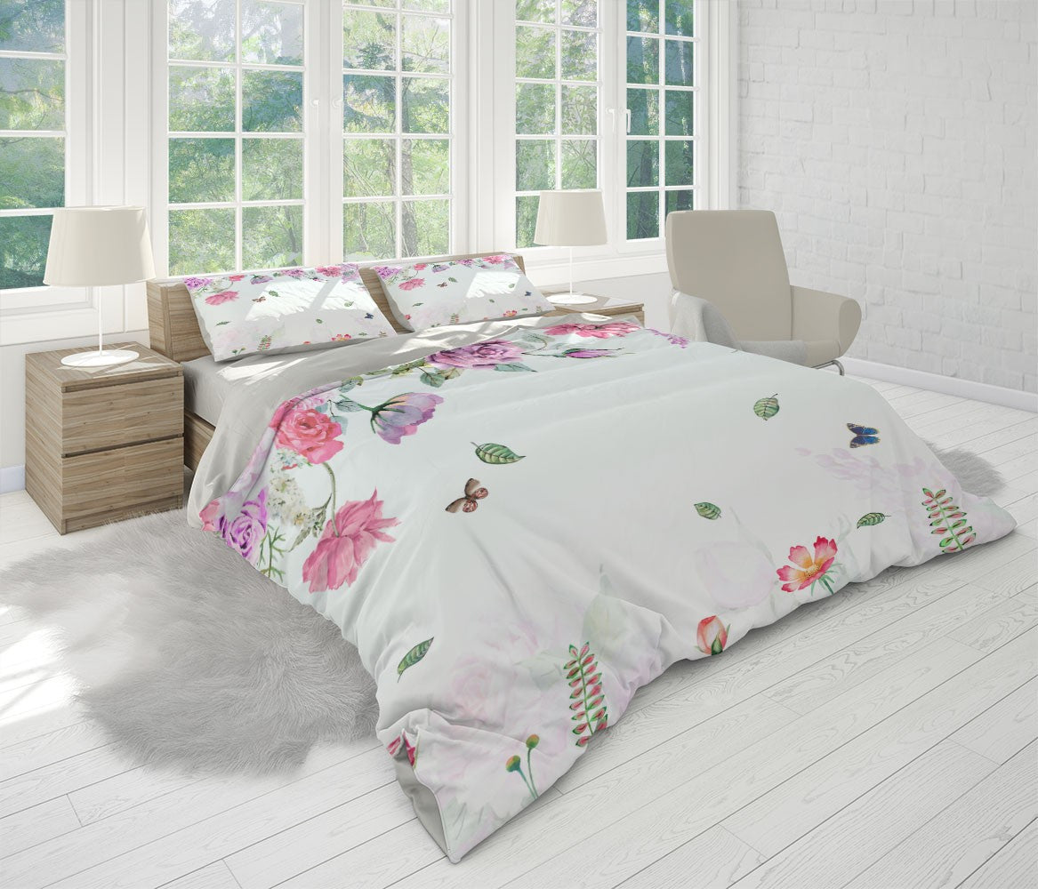 Rose Butterfly Kids Colorful Multicolour 3D Duvet Cover Set W Pillow Cover, Single Double Queen King Size, Printed Cotton Quilt Doona Cover