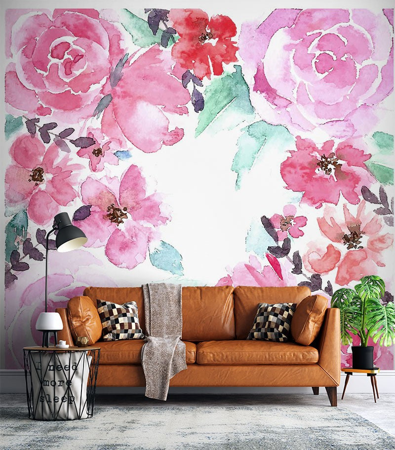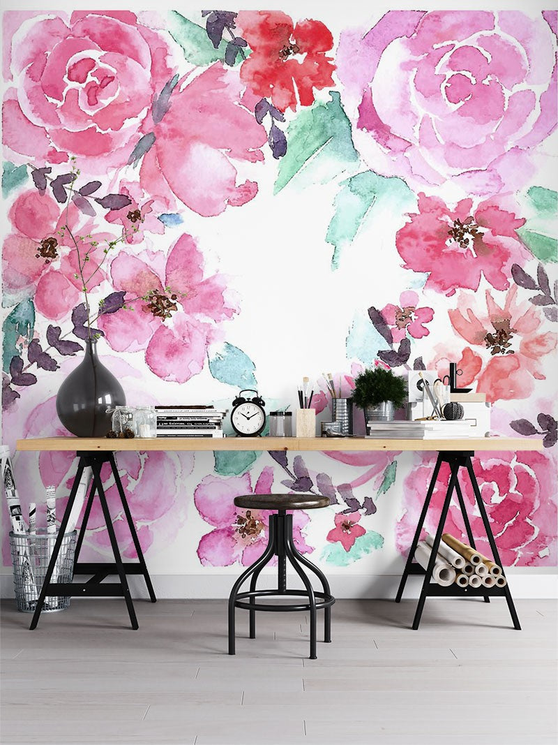 Rose Floral Dutch Flowers Pink Wallpaper Mural,Self-Adhesive Peel And Stick 3D Wall Decal,Australian Company Bedroom Wall Decor