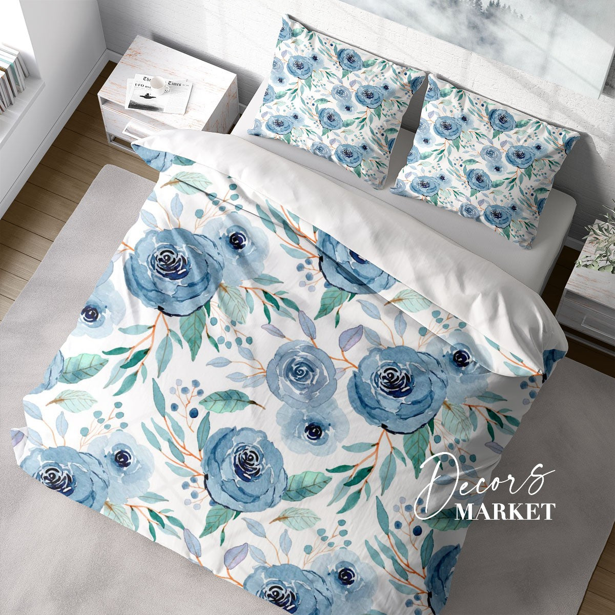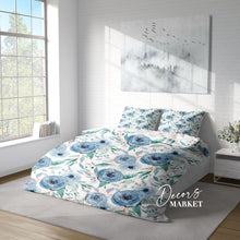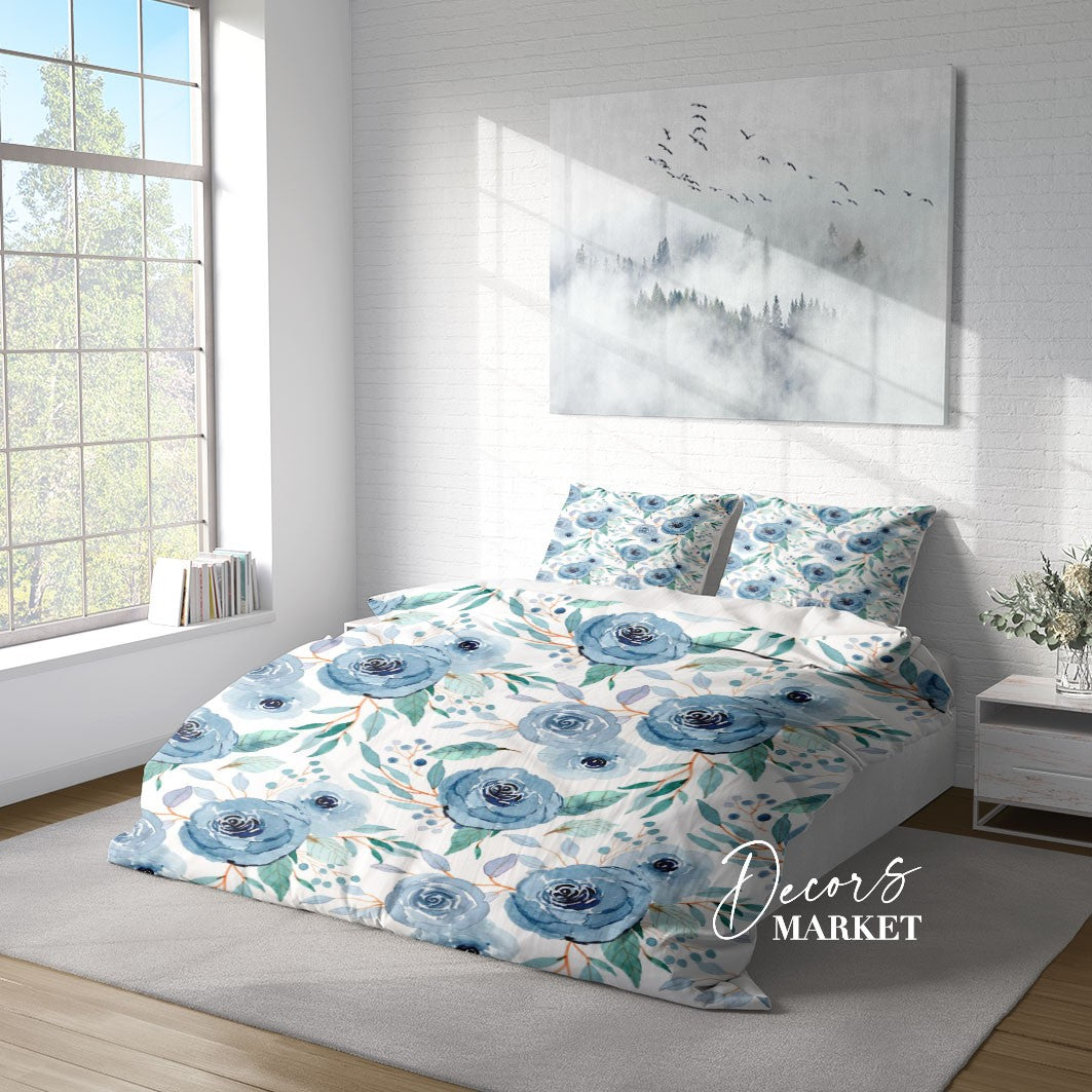 Rose Flower Leaf Duvet Cover Set w Pillowcases, Blue Berry Floral Patterns 3D Quilt Cover, 3pc Single Double Queen King Size Doona Cover
