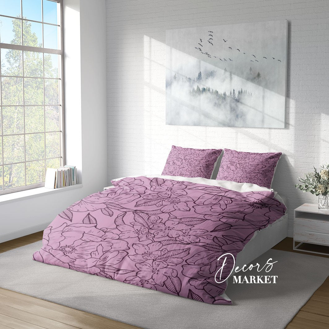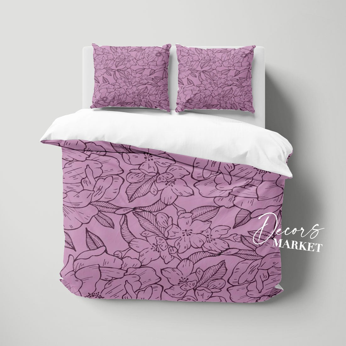 Rose Leaf Sketch Line Duvet Cover Set w Pillowcases, Purple Floral Patterns 3D Quilt Cover, 3pc Single Double Queen King Size Doona Cover
