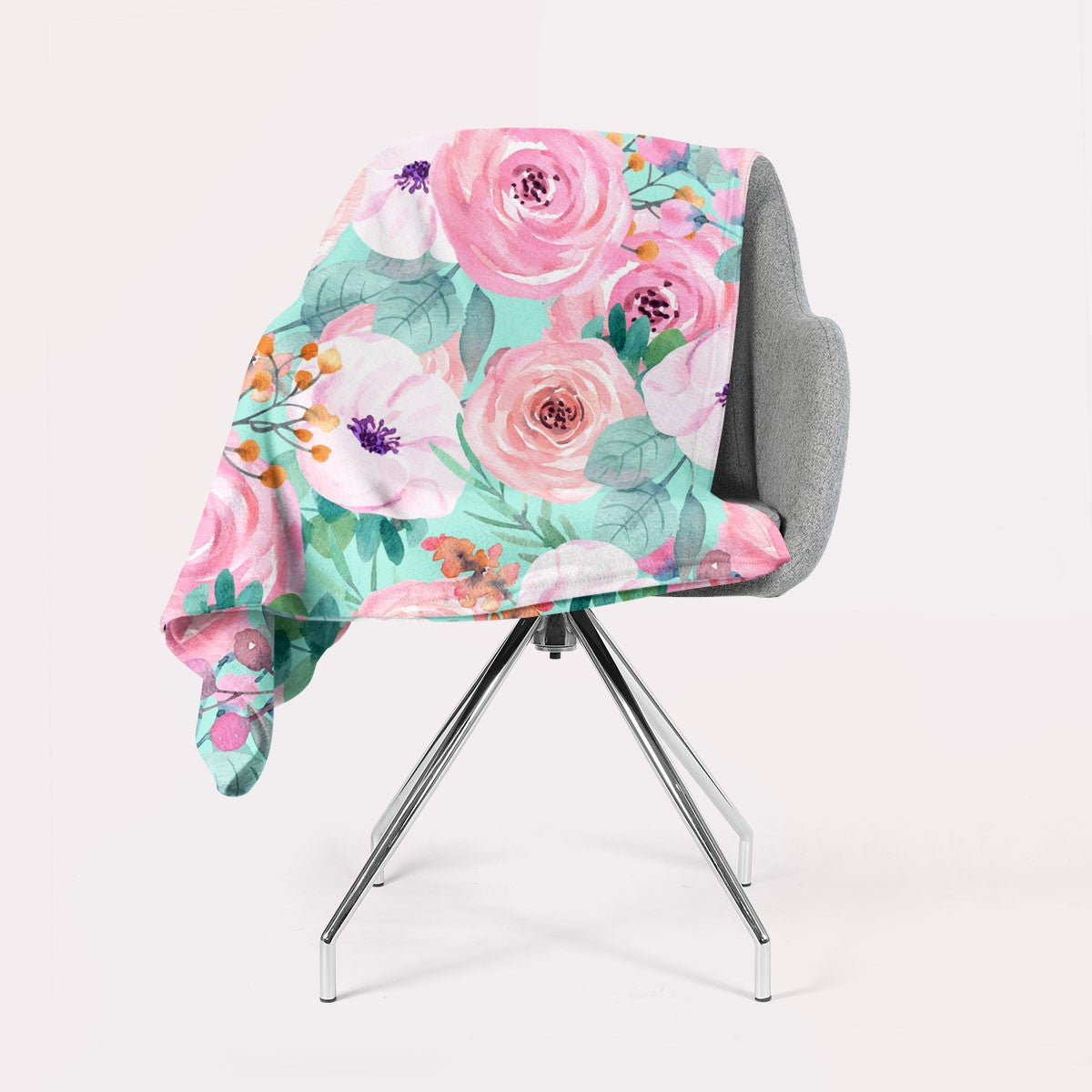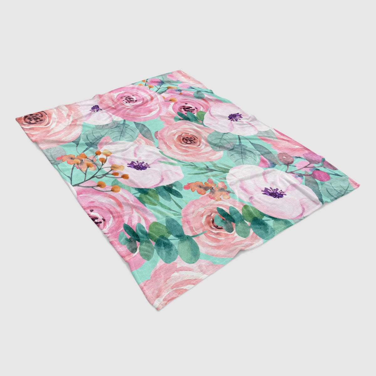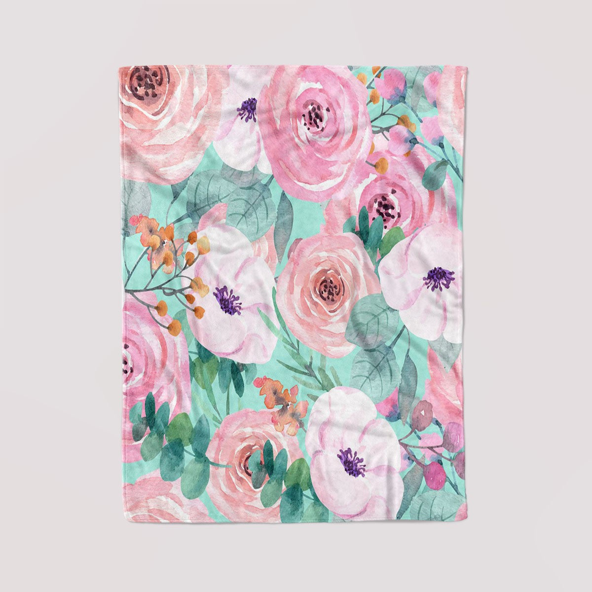 Rose Leaf Watercolor Floral Patterns Pink Personalized Throw Blanket Custom Fleece Sherpa Throw