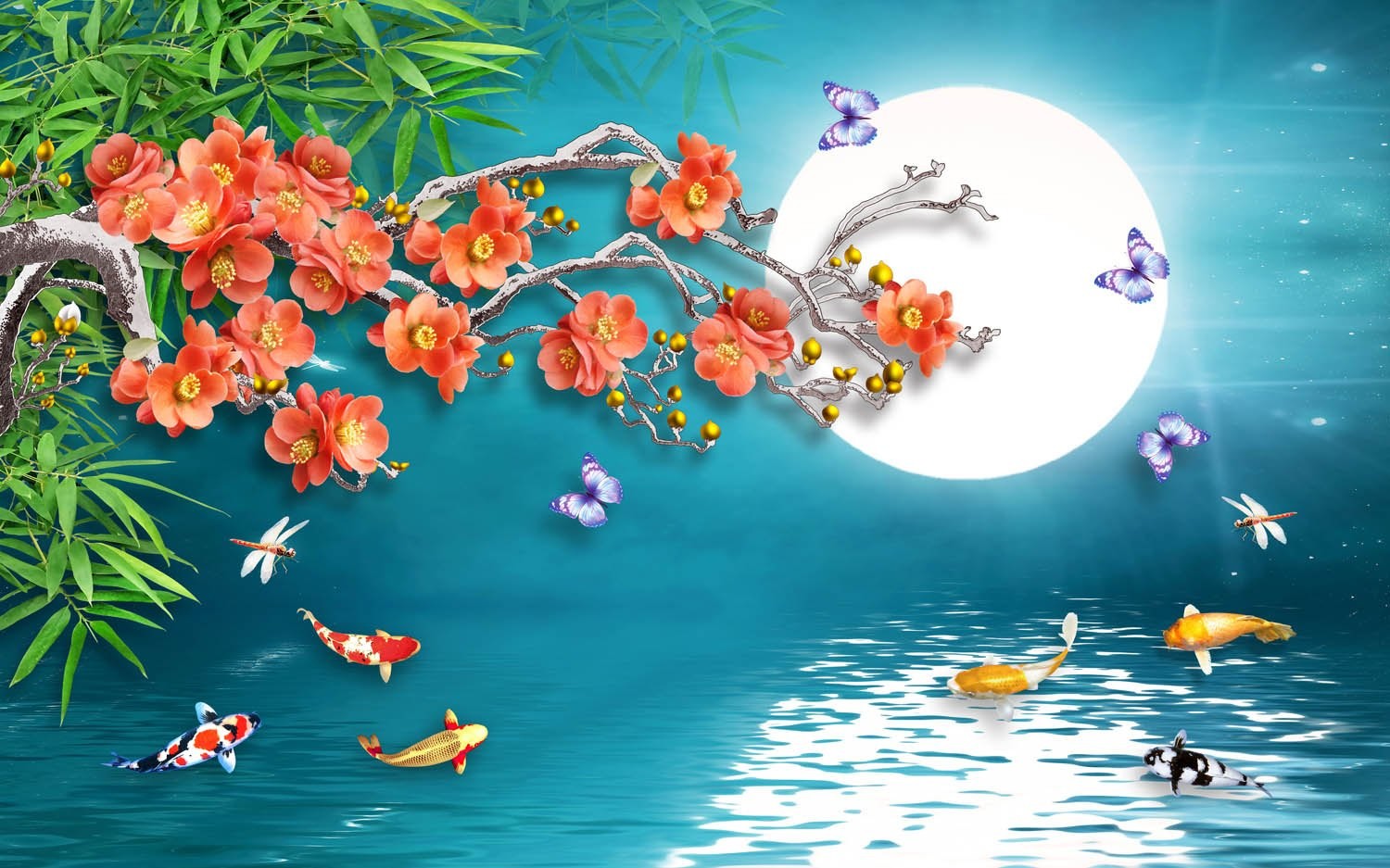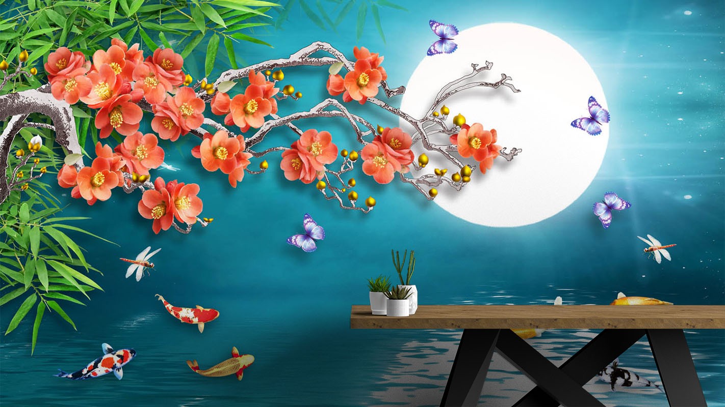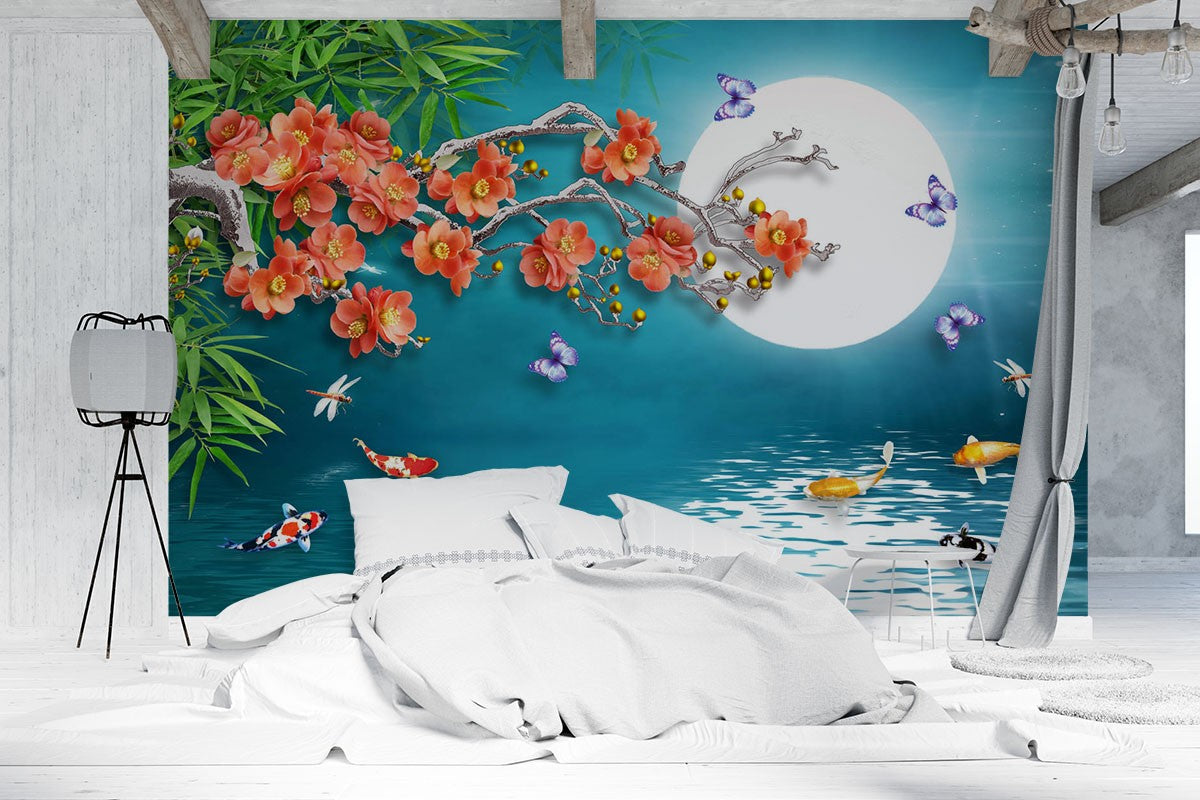 Rose Moon Fish Nature Sky Blue Wallpaper Mural