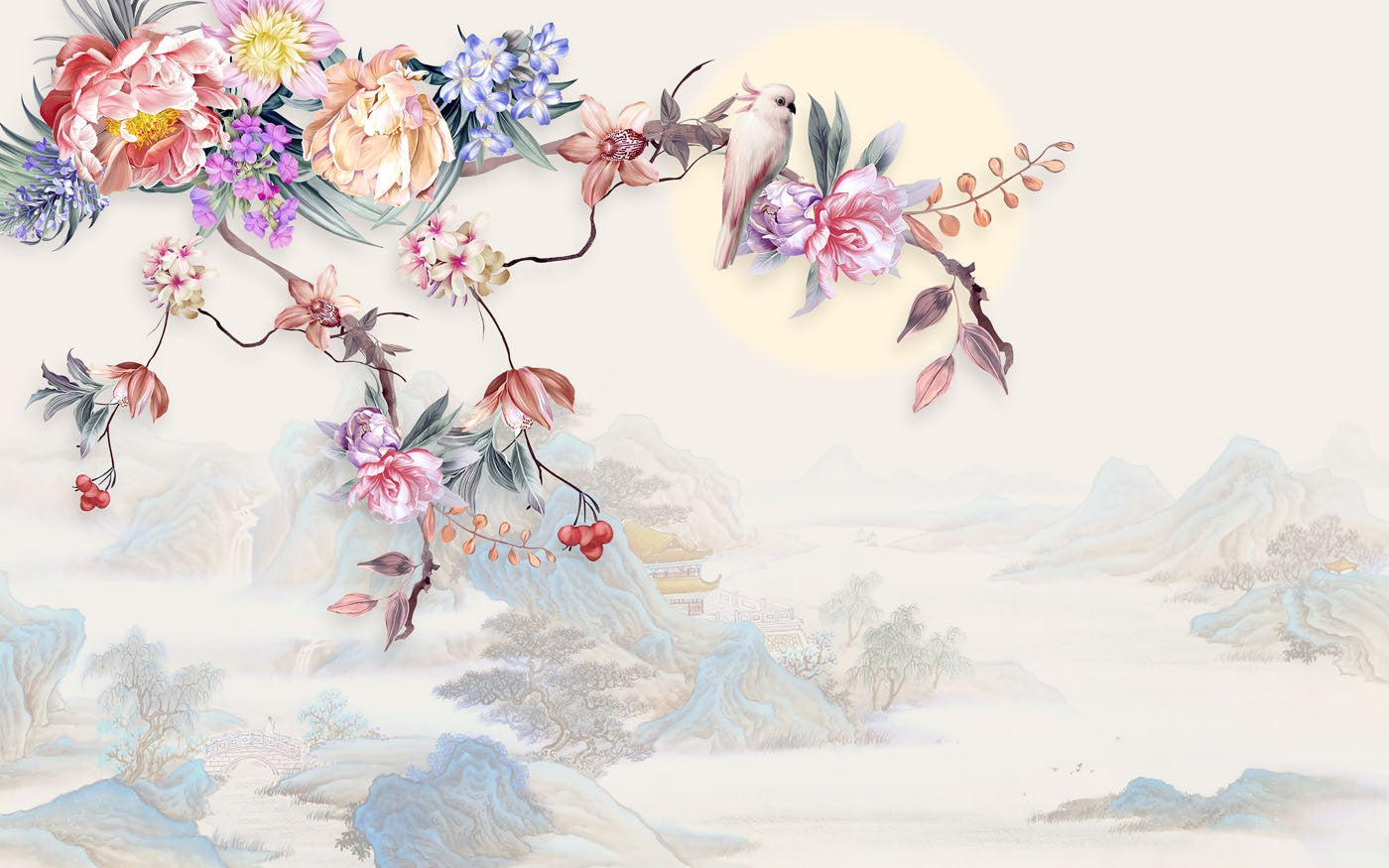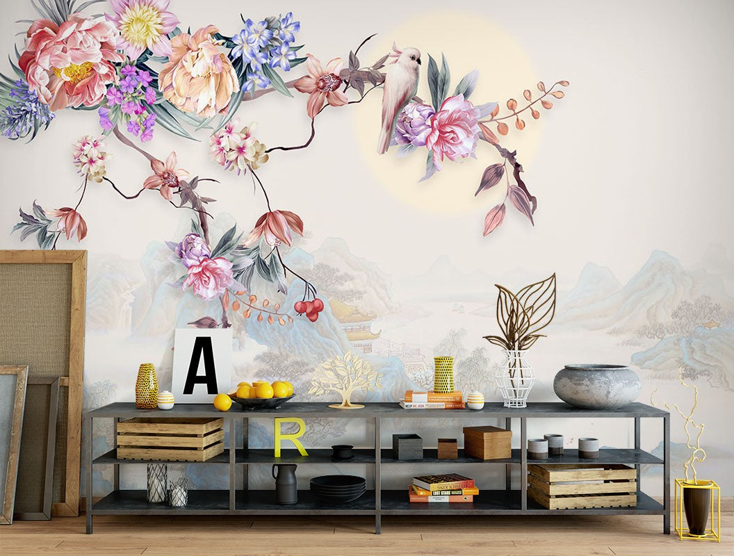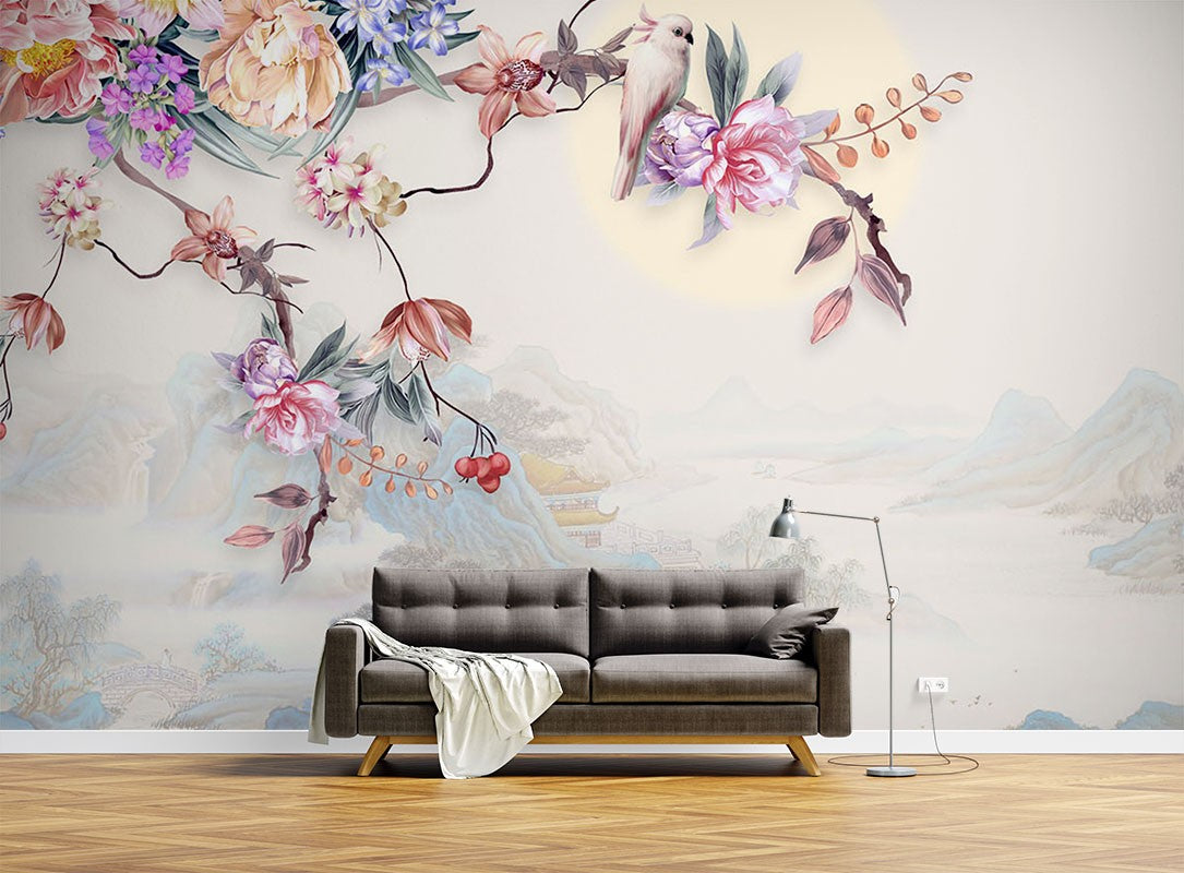 Rose Parrot Floral Dutch Flowers Bright Wallpaper Mural,Self-Adhesive Peel And Stick 3D Wall Mural,Australian Company Removable Wall Decor