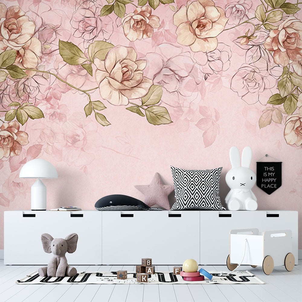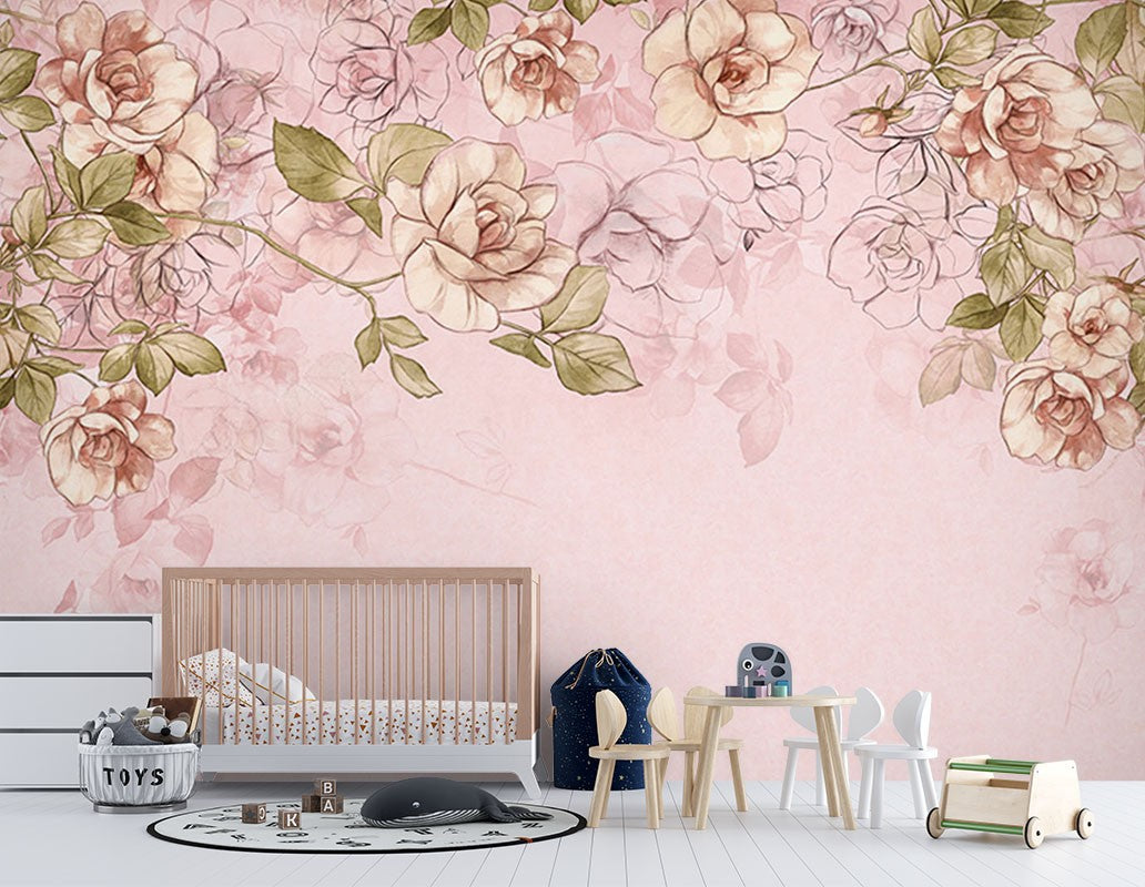 Rose Pink Kids Colorful Pink Wallpaper Mural,Self-Adhesive Peel And Stick 3D Wall Mural,Bedroom Designer Wall Decor
