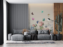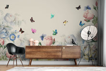 Roses Butterflies Floral Flowers Creamy Wallpaper Mural