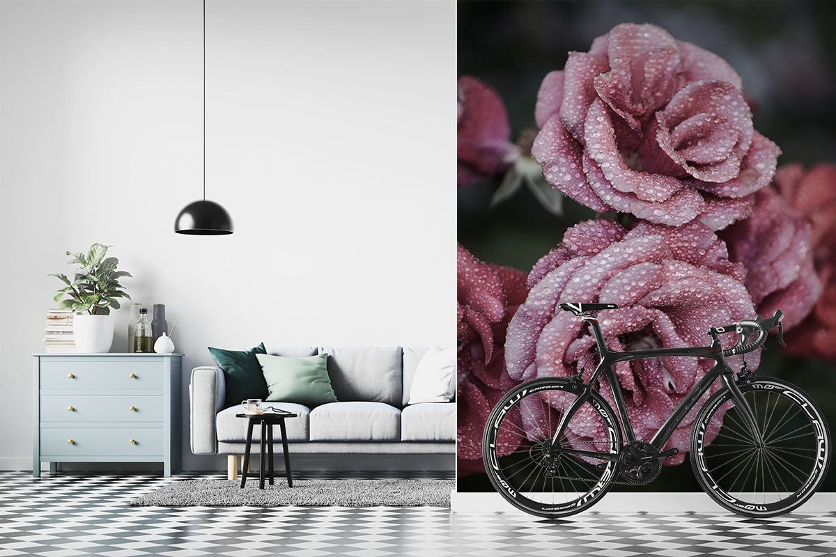 Roses Floral Dutch Flowers Black Wallpaper Mural,Self-Adhesive Peel And Stick 3D Wall Decal,Designer Bedroom Wall Decor