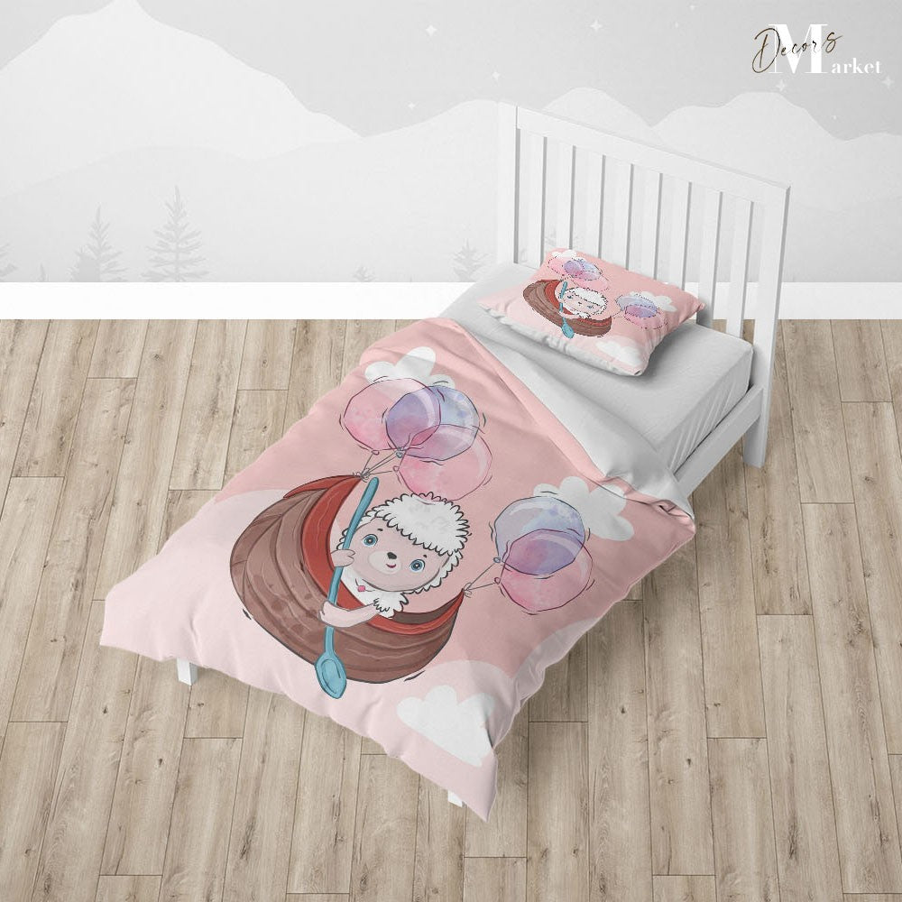 Rowing Sheep Balloon Duvet Cover Set w Pillow Cover, Pink Kids Animal 3D Quilt Cover, Single Double Queen King Size Doona Cover
