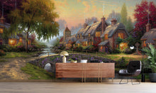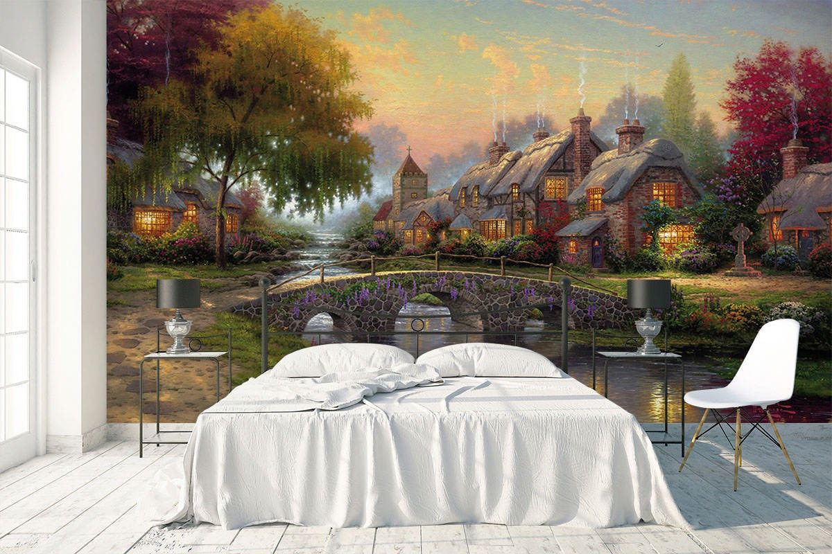 Rural Scenery Art Traditional Green Wallpaper Mural,Self-Adhesive Peel And Stick 3D Wall Art,Removable Bedroom Wall Decor