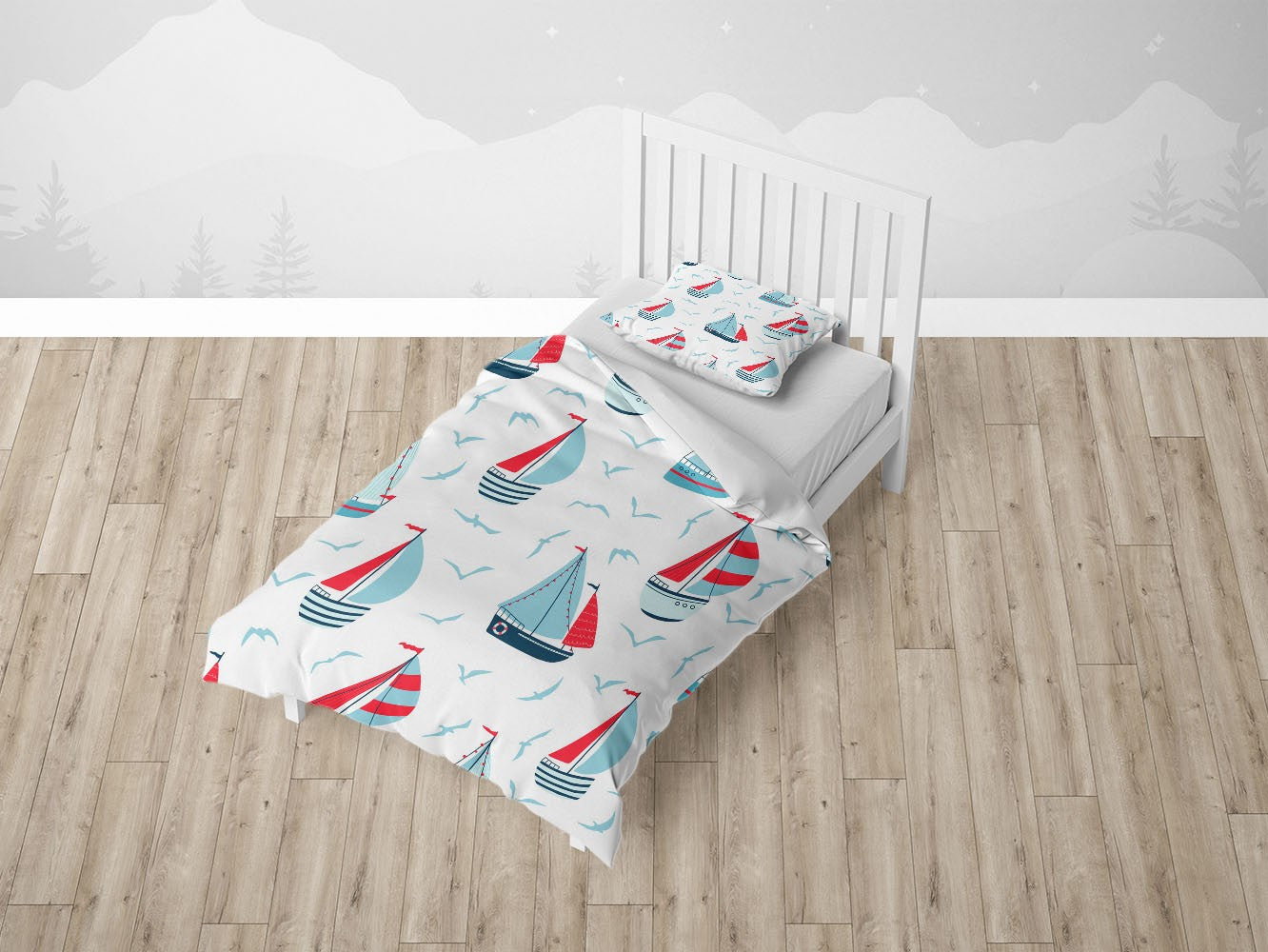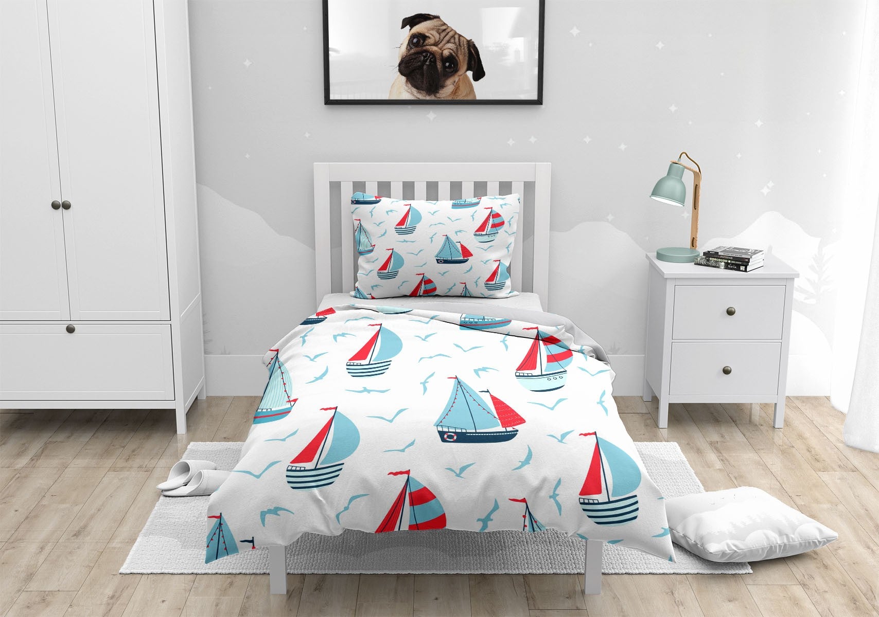 Sailboat Seagull Duvet Cover Set w Pillowcases, Blue Kids Patterns 3D Quilt Cover, 3pc Single Double Queen King Size Doona Cover