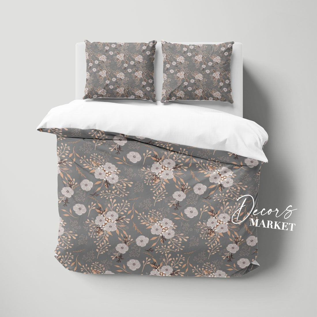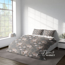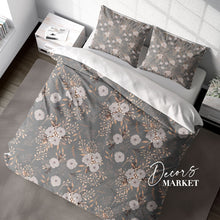 Sakura Blossom Flower Duvet Cover Set w Pillowcases, Gray Floral Flowers 3D Quilt Cover, 3pc Single Double Queen King Size Doona Cover
