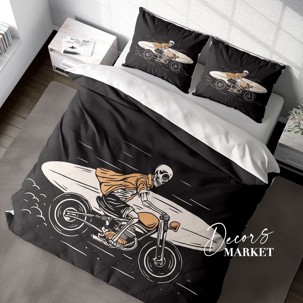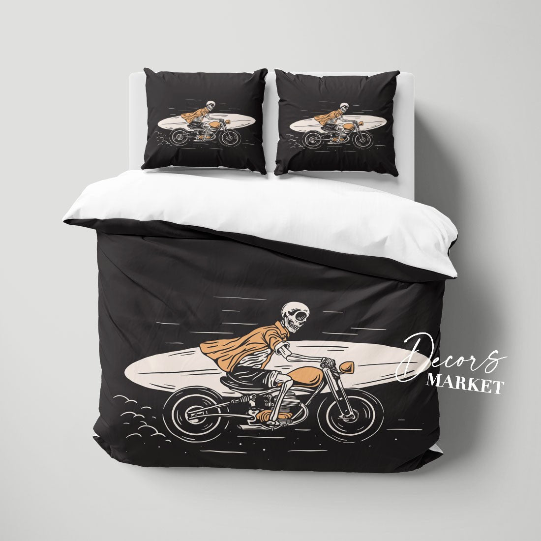 Sampan Skeleton Duvet Cover Set w Pillowcases, Orange Art Fantasy 3D Quilt Cover, 3pc Single Double Queen King Size Doona Cover