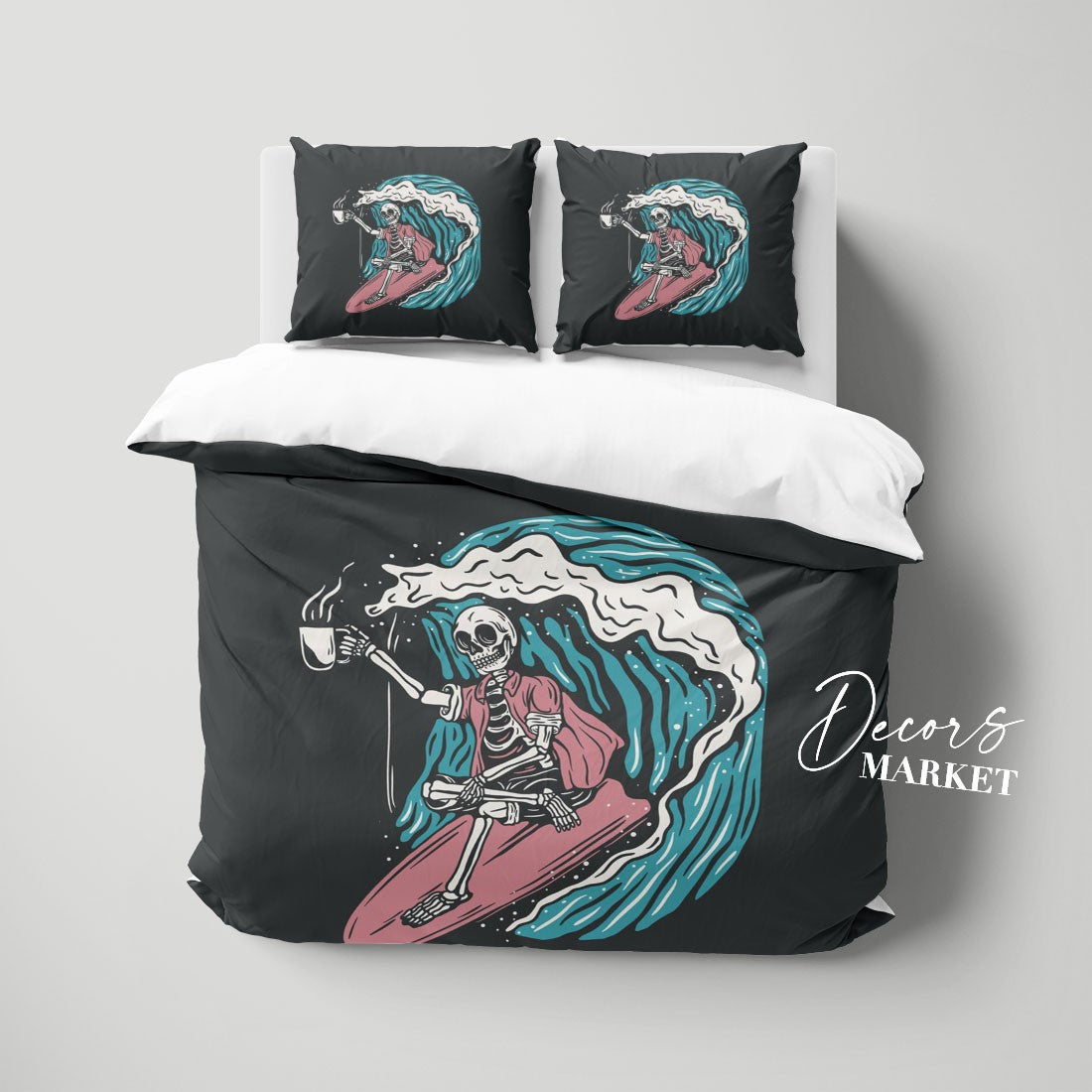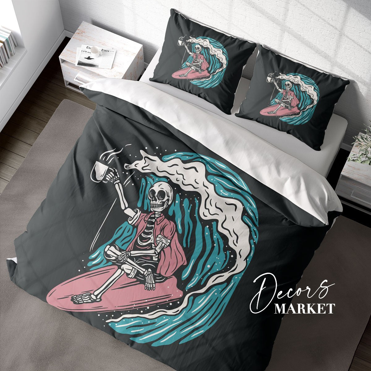 Sampan Skeleton Duvet Cover Set w Pillowcases, Pink Art Fantasy 3D Quilt Cover, 3pc Single Double Queen King Size Doona Cover