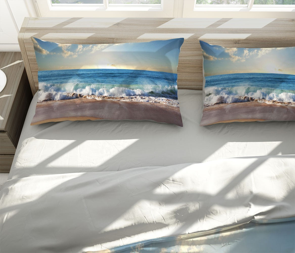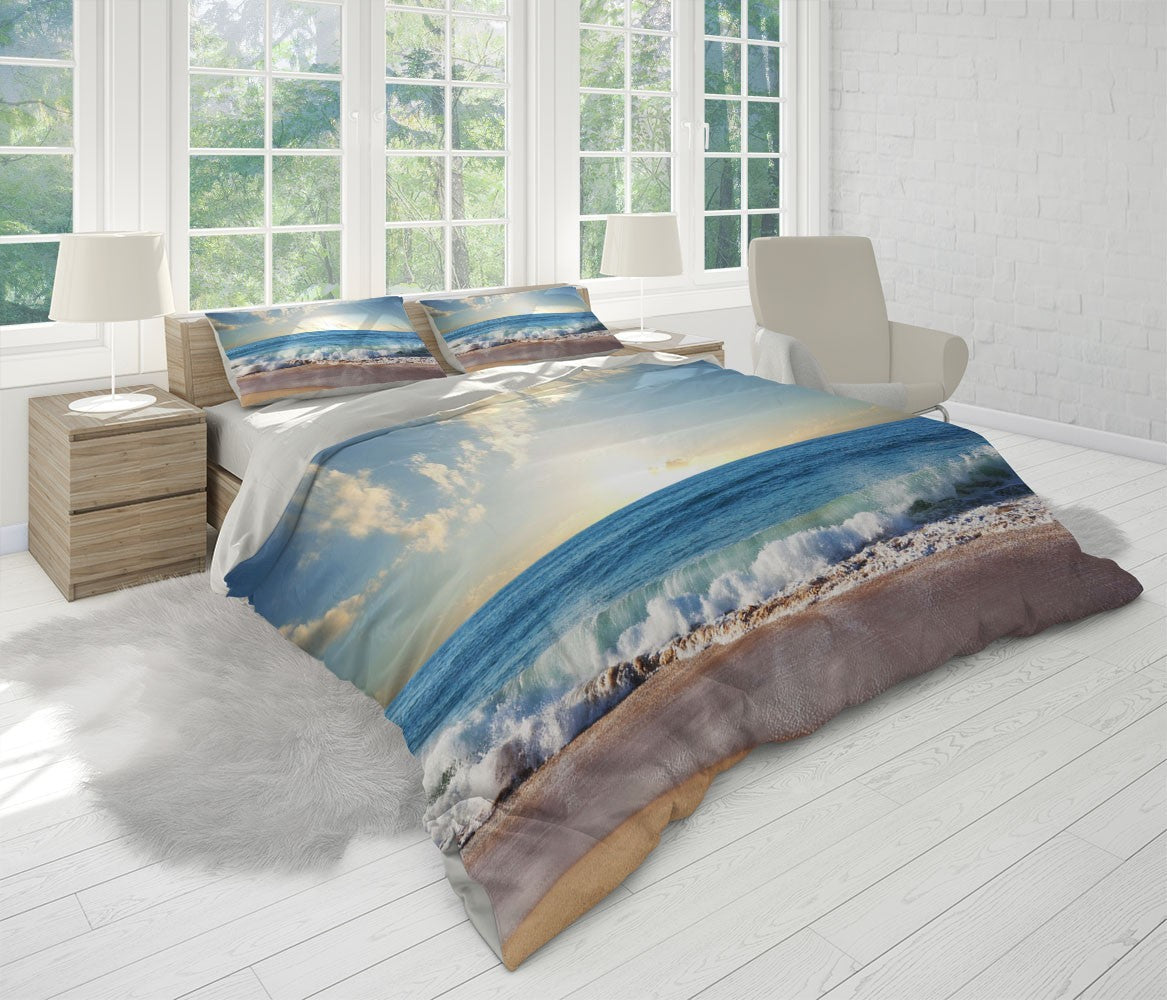 Sand Sunshine Duvet Cover Set W Pillow Cover, Blue Beach Wave 3D Quilt Cover, Single Double Queen King Size Doona Cover