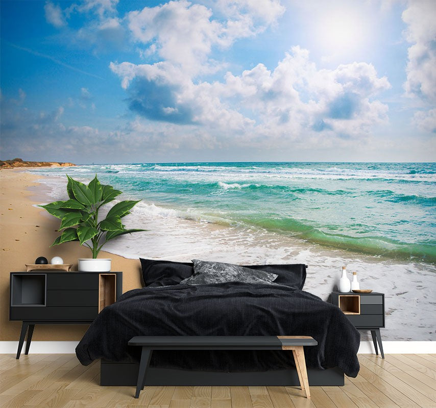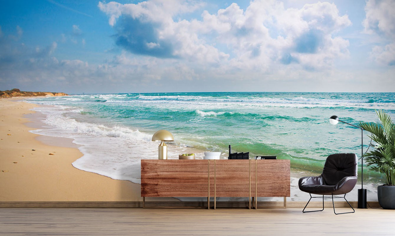 Sandy Beach Blue Wallpaper Mural,Self-Adhesive Peel And Stick 3D Wall Decor,Designer Australian Company Wall Decor