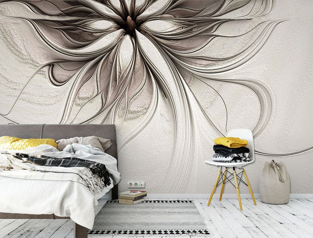 Abstract Sand Art Flower Floral Flowers Brown Wallpaper Mural, Self-Adhesive Peel And Stick 3D Wall Art, Designer Removable Wall Decor