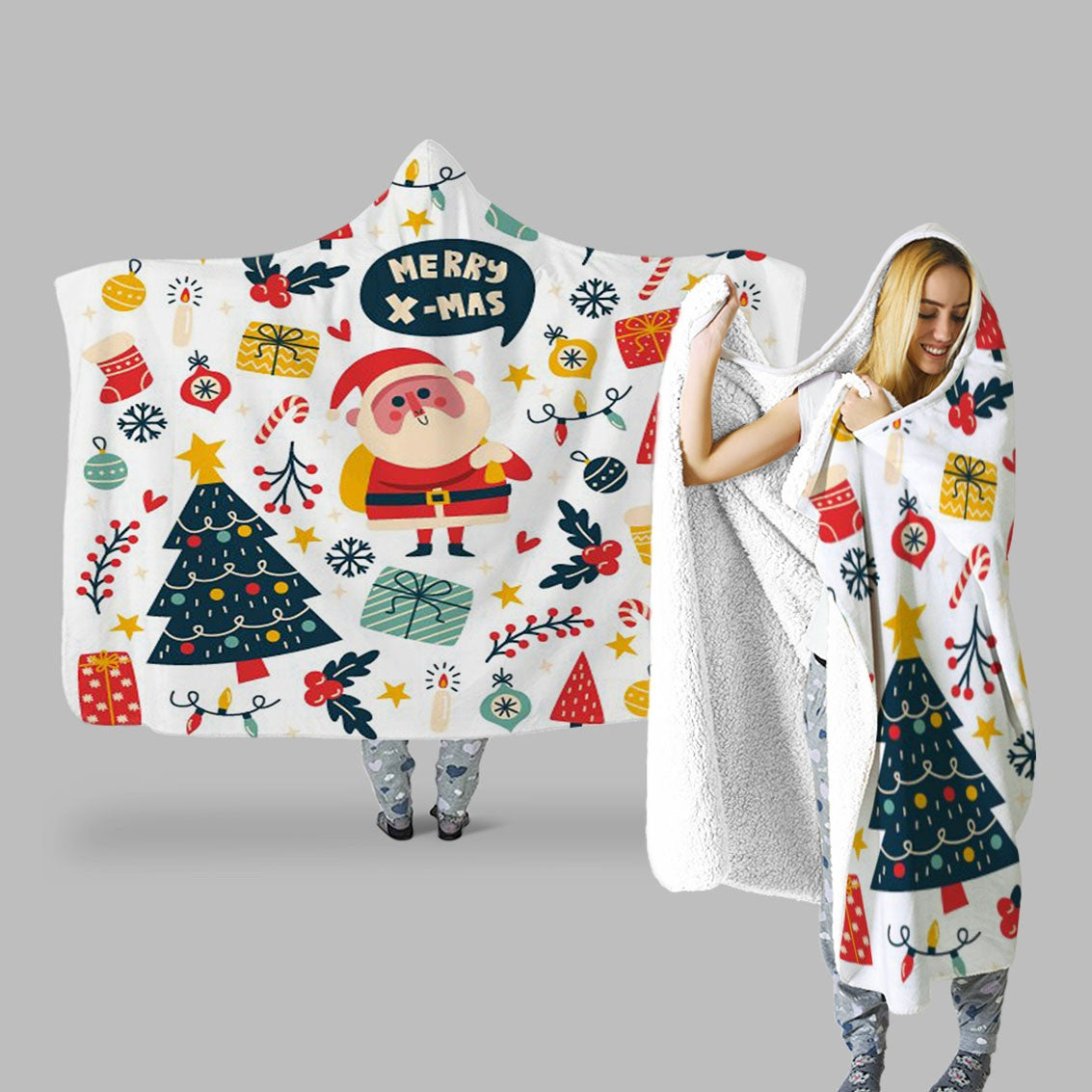 Santa Christmas Gifts Kids Patterns White Personalized Hooded Throw Blanket Fleece Hoodie Cape