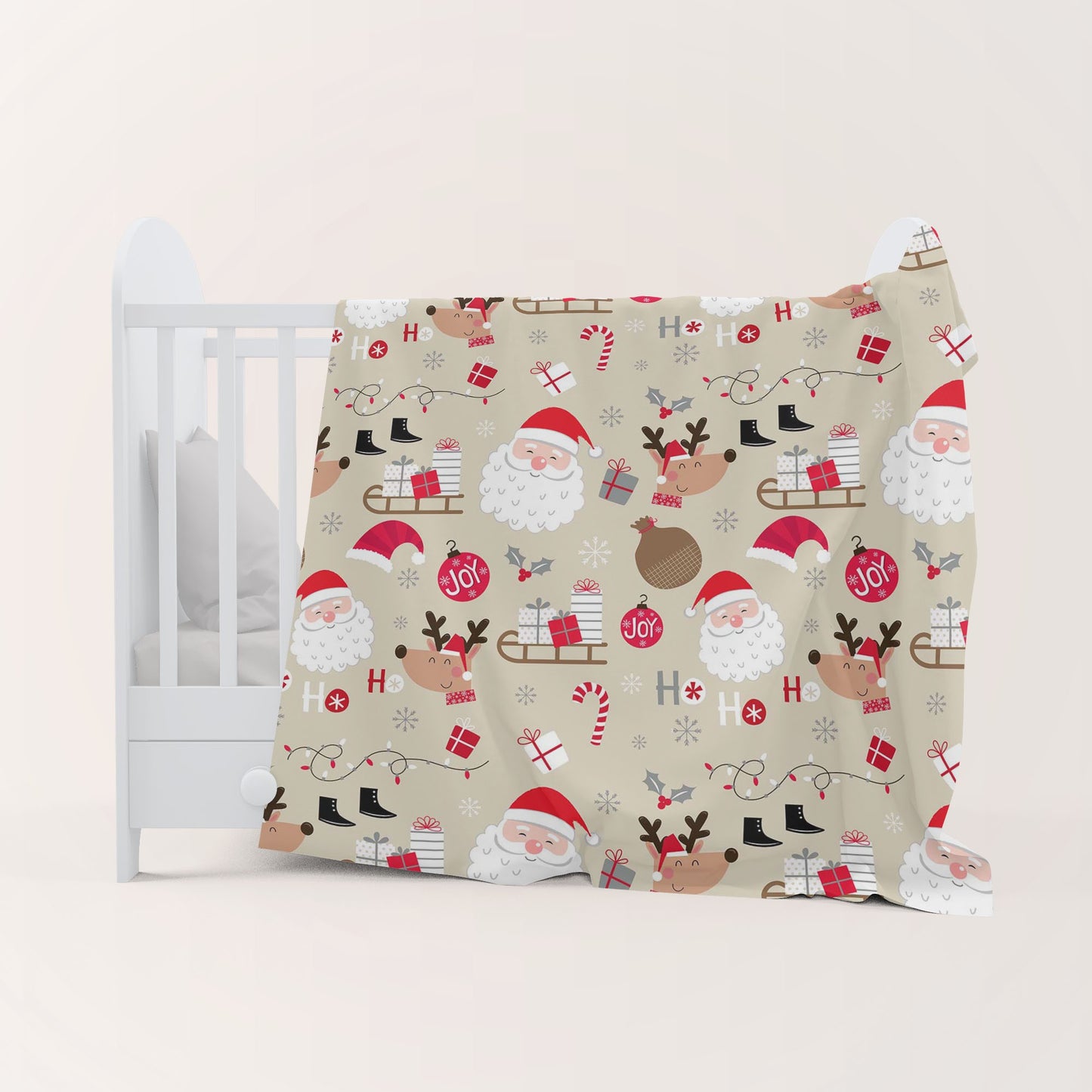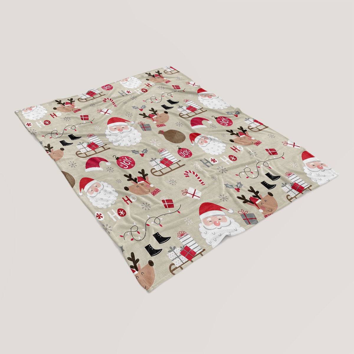 Santa Christmas Hat Sled Kids Patterns Multicolour Personalized Throw Blanket Custom Fleece Sherpa Throw