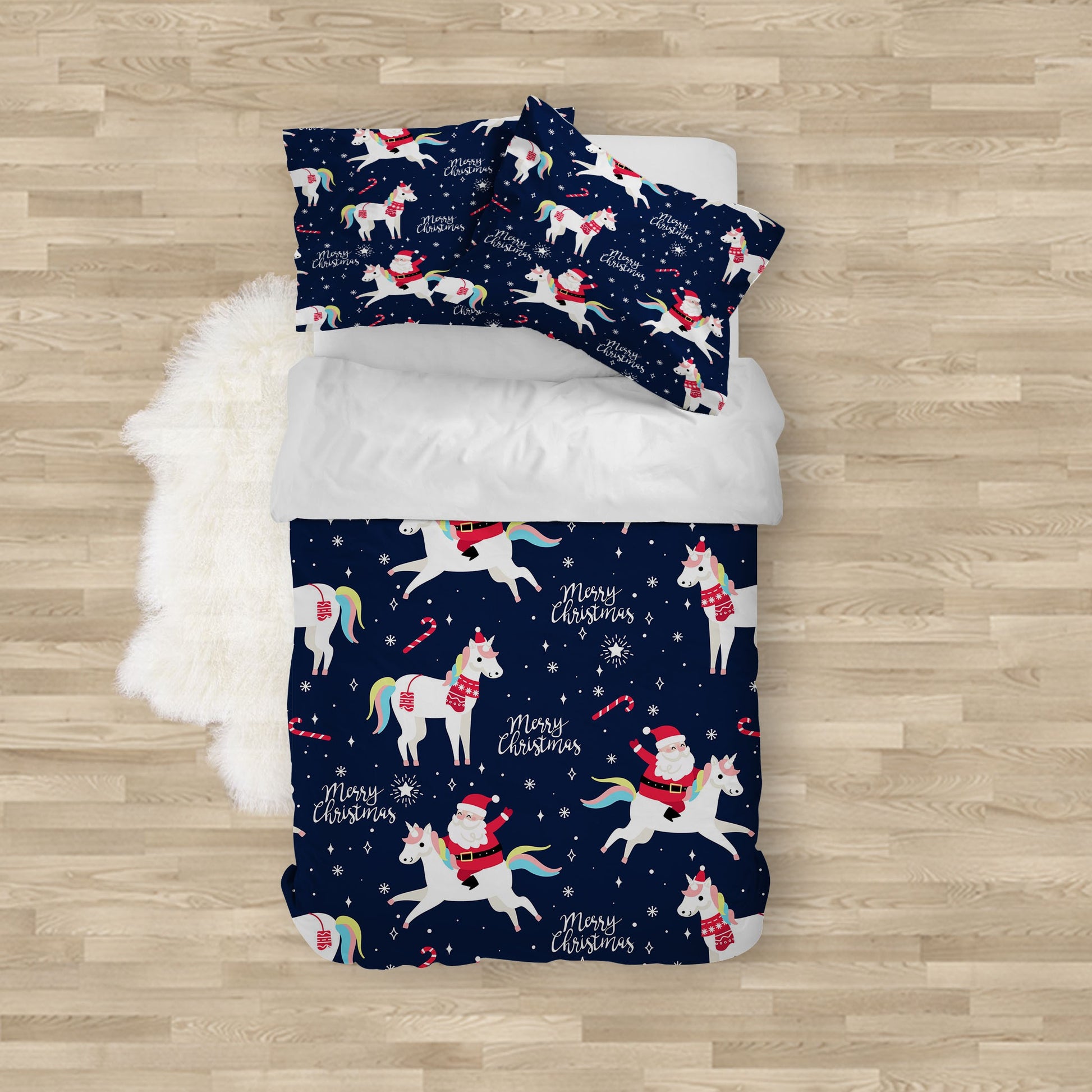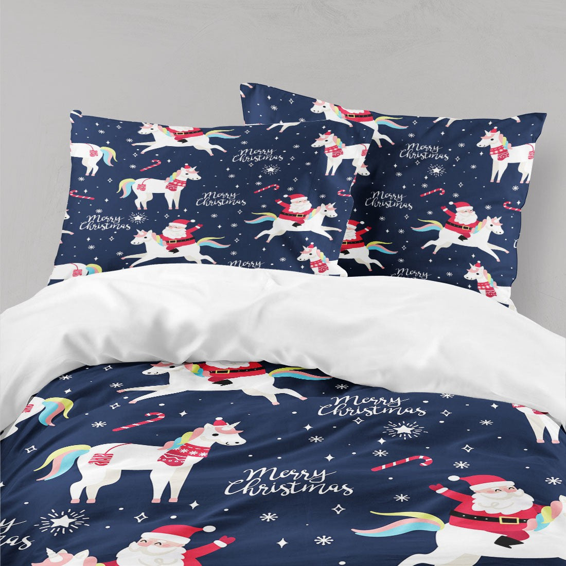 Santa Unicorn Duvet Cover Set W Pillowcases, Colorful Kids Patterns 3D Quilt Cover, 3Pc Single Double Queen King Size Doona Cover
