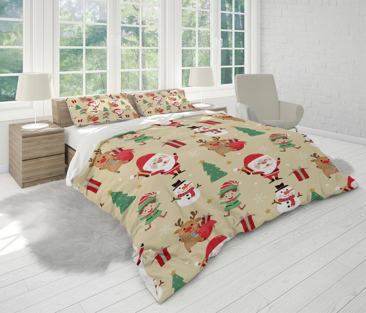 Santa Xmas Gift Duvet Cover Set W Pillowcases, Red Kids Cartoon 3D Quilt Cover, 3Pc Single Double Queen King Size Doona Cover