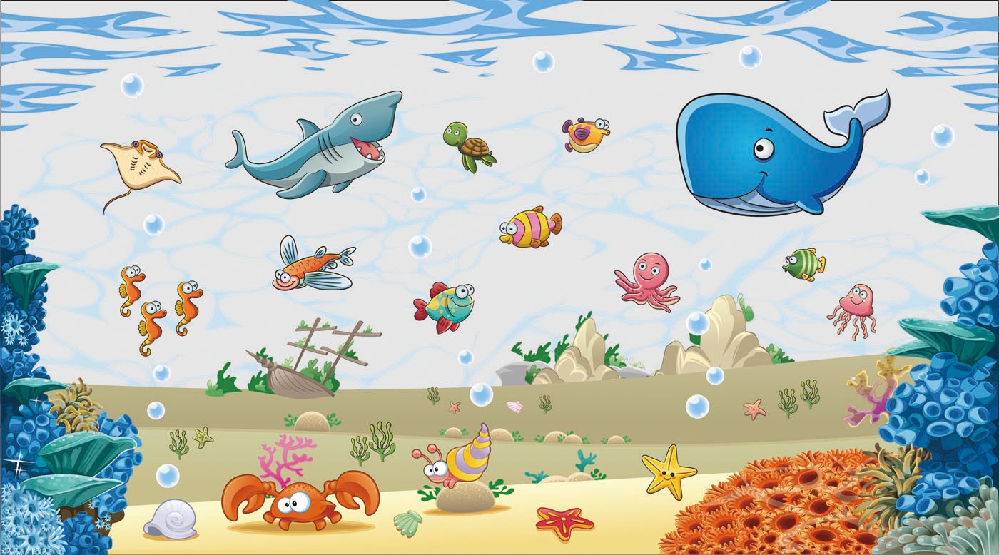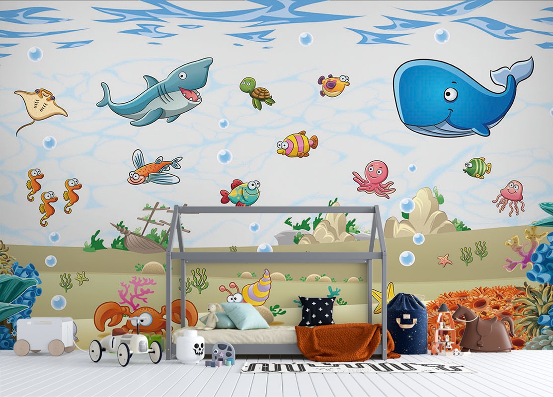 Sea Creatures Kids Animal Blue Wallpaper Mural,Self-Adhesive Peel And Stick 3D Wall Art,Bedroom Removable Wall Decor