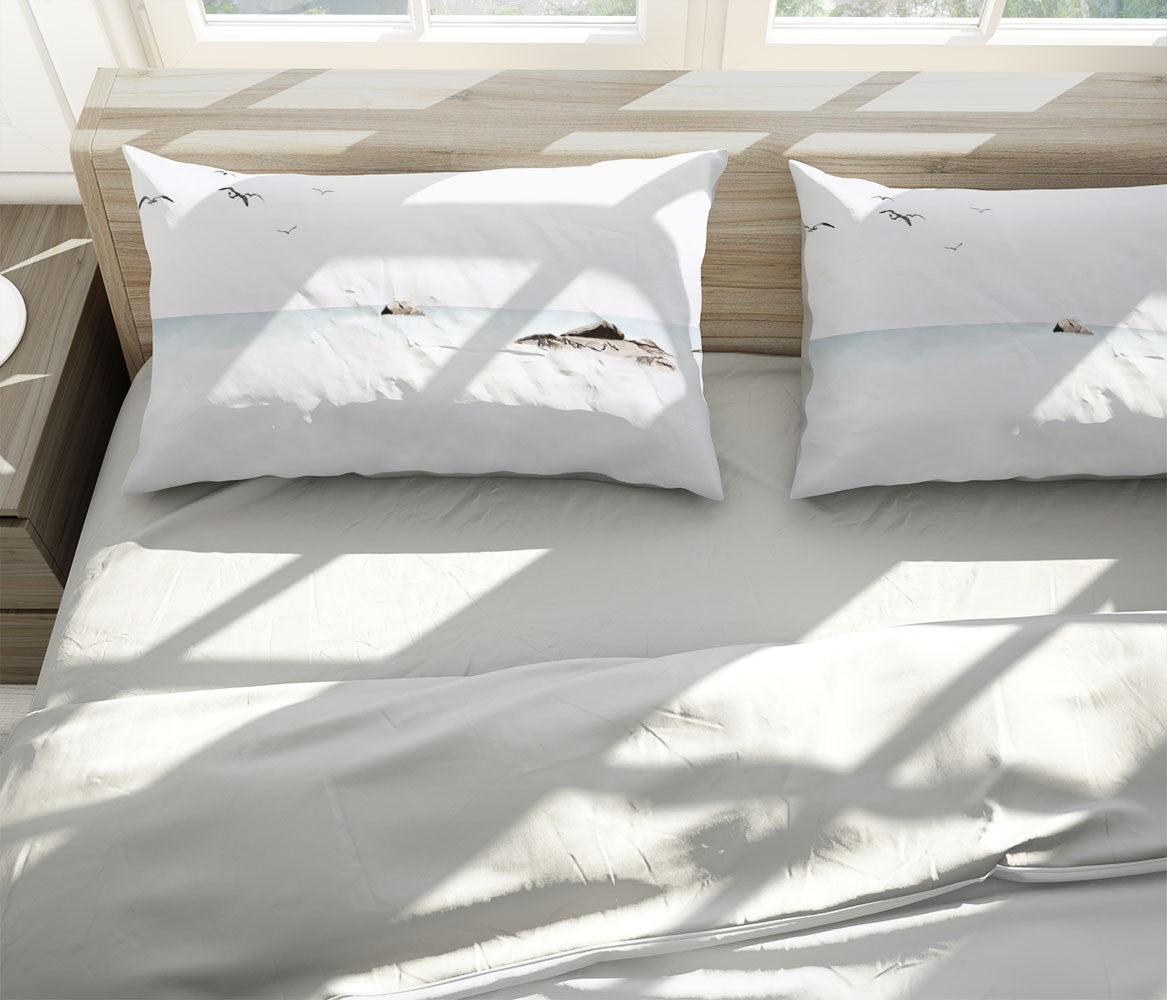 Sea Rock Duvet Cover Set W Pillow Cover, White Art Watercolor 3D Quilt Cover, Single Double Queen King Size Doona Cover