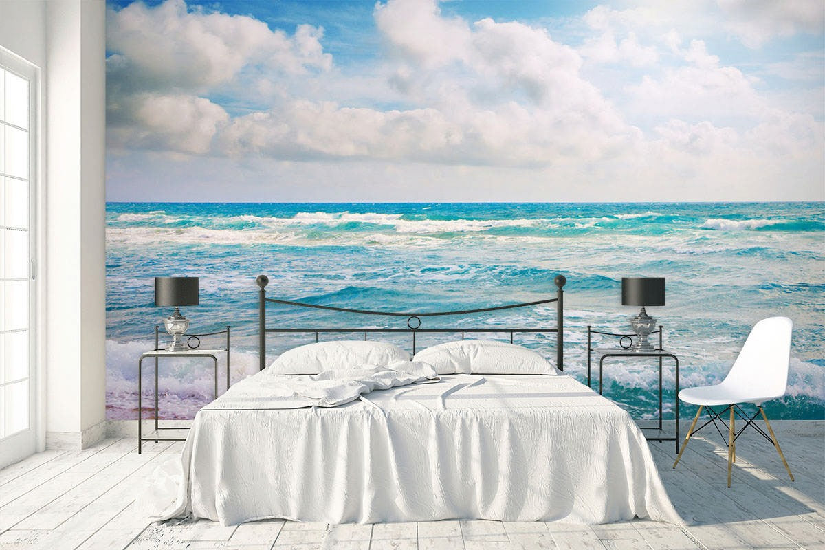 Sea Surface Beach Wave Blue Wallpaper Mural,Self-Adhesive Peel And Stick 3D Wall Paper,Australian Company Removable Wall Decor