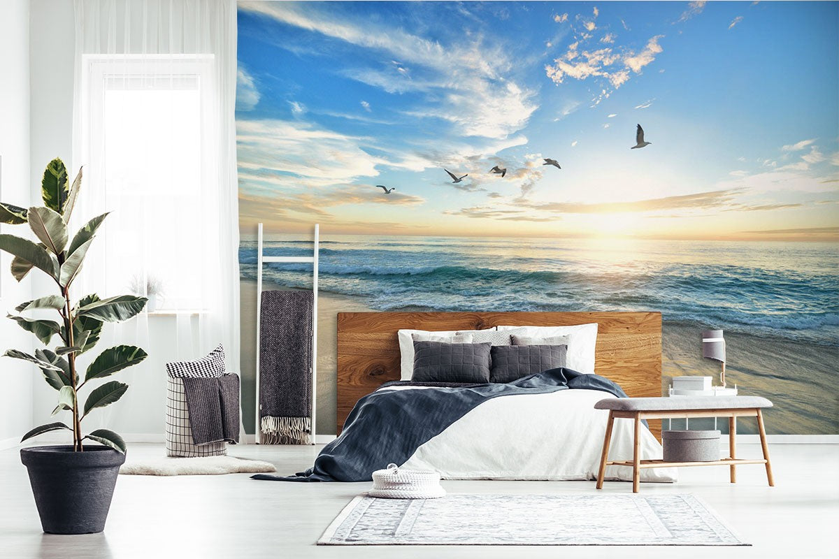 Seagull Horizon Beach Blue Wallpaper Mural,Self-Adhesive Peel And Stick 3D Wall Mural,Designer Australian Company Wall Decor
